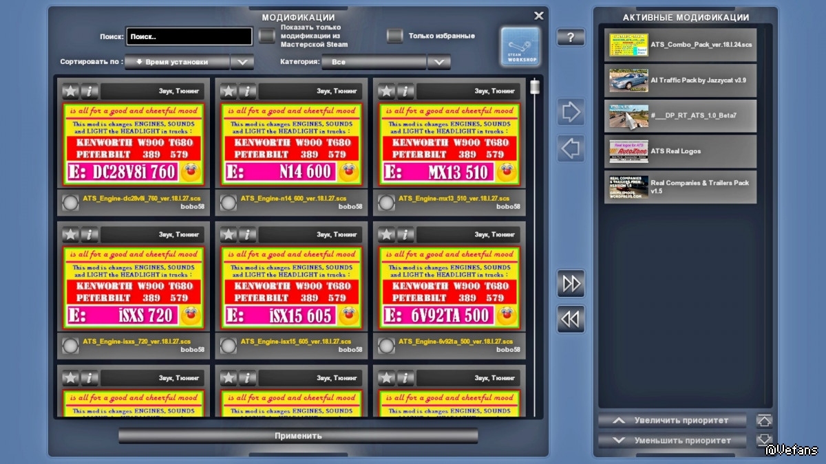 The name list 12 of mods, differing by a engine and sound for trucks (SCS) ATS: