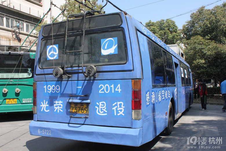 杭州最后的一般老式无轨电车已于今天下午光荣退休了
