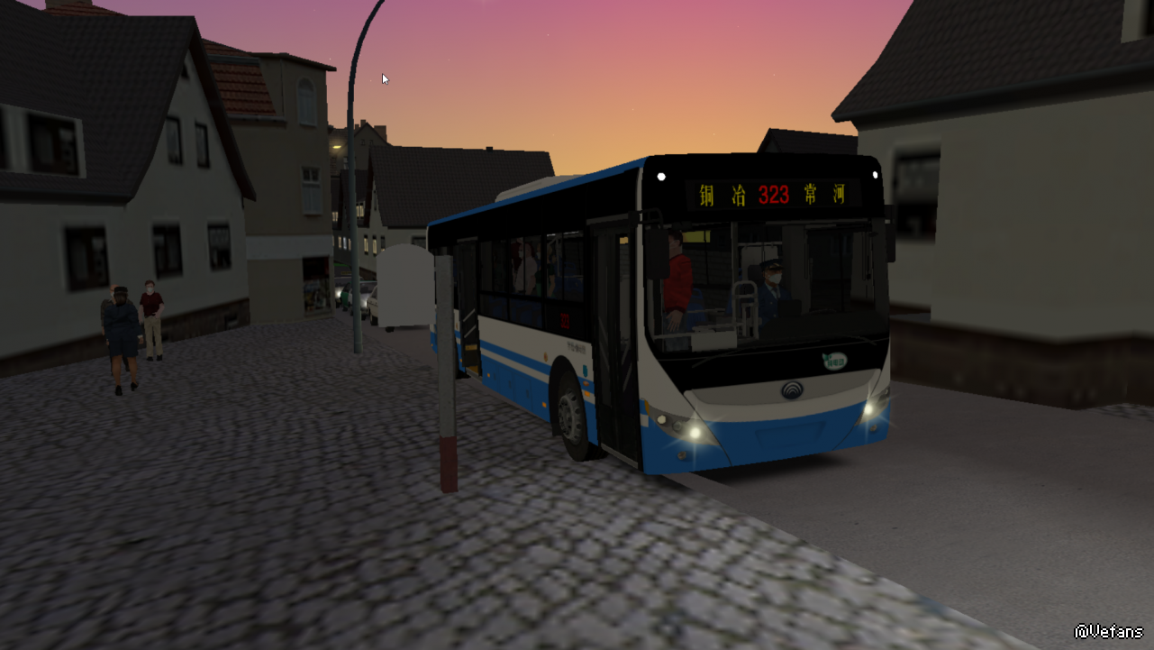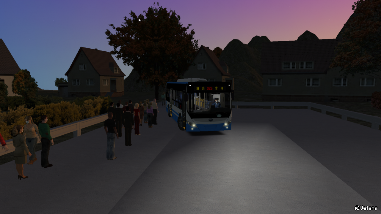 ,我本来是很不想玩石家庄323路, 这车线路我已经开过四趟了,但是凌晨无聊,还是用E10开了一趟。如果问我石家庄地图最喜欢哪条线路?我肯定回答323。323路是一条山区线路,路很窄,弯道多,如果说石家庄556路能让人睡着,那么323路相对就有意思多了。相信各位肯定见过许多山区公交,就是五六点就窜出来的中巴这些。石家庄323路就是这么一条线路。我特地开了6点15的早班车,在游戏中天可以说是全黑。越开越远,天也越来越亮。从古佛寺上山后,迎面的是上坡连续弯道。此时红日从山谷中升起,风景自己欣赏,本人懒得打字描绘。路上我们是领头车,一大串小汽车跟着我身后。雪白的灯光照凉了漆黑一片的小路。天还没完全亮,在漆黑的小路低速行驶,那一刻,我知道城乡公交首班车的意义何在。