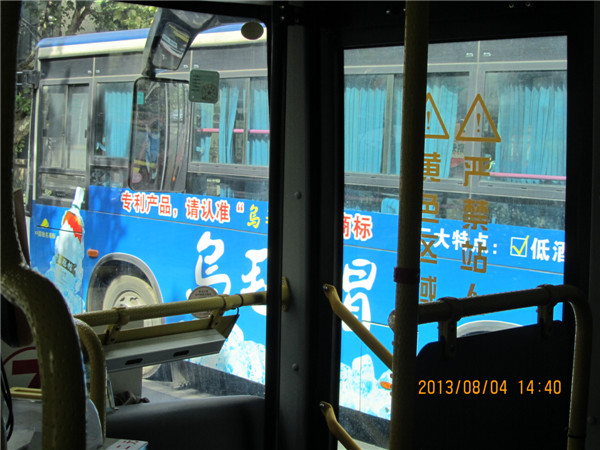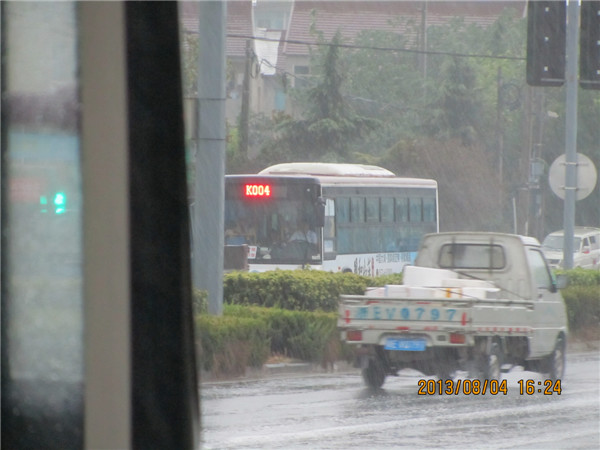 ,(我没带雨伞!!!),在雨中我拍了一张雨中的巴士奔驰(见图41),终于,在16:24,我见到了6109G的身影(见图42-44),进了这车,感觉好好,居然是皮座位。(见图45-48)