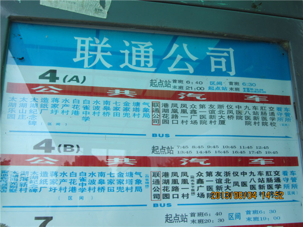 第三站,联通公司,这是我们这里14路的起点站。也是4A,4B,7,16,17,37等线路的途经站。(站牌见图16,与图1不同,图1是最近几年我们这才开始用的,由于技术不成熟,像这样的站牌我们这不多。)说到了这里,就不得不说一下14路公交车,它从联通公司出发,到东湖家园,途经市中心地区,比如浙北大厦,仪凤桥等站点。14路公交线,采用海格车,自己看吧~~~~~(见图15,图17~20),在等去下一站的车时,我又闲拍了几张,技术有点烂,大家看看吧。(见图21~26)