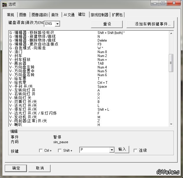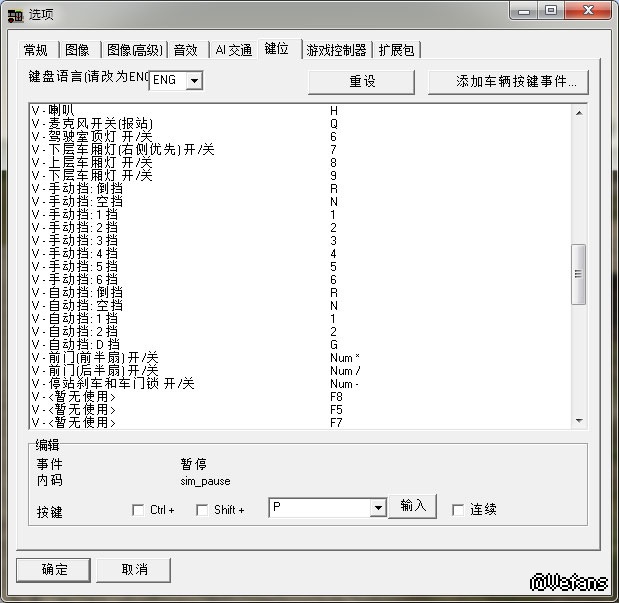 发动机 开/关:M(默认,需在N档按时间长一些发动)