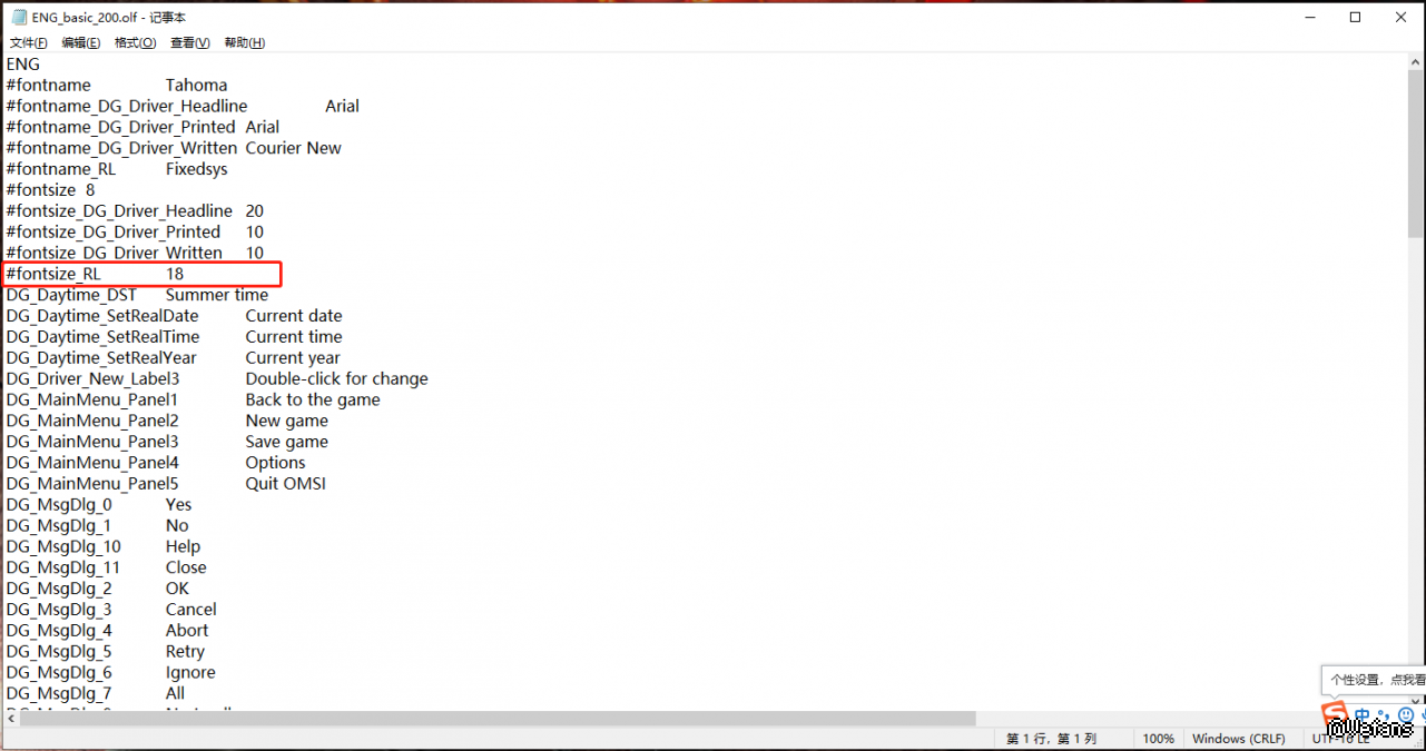 找到红款中标识出的这个文件,后面的数字就是文字大小,默认的是9,我改成了18,大家可以自己试验调试出合适的文字 ...