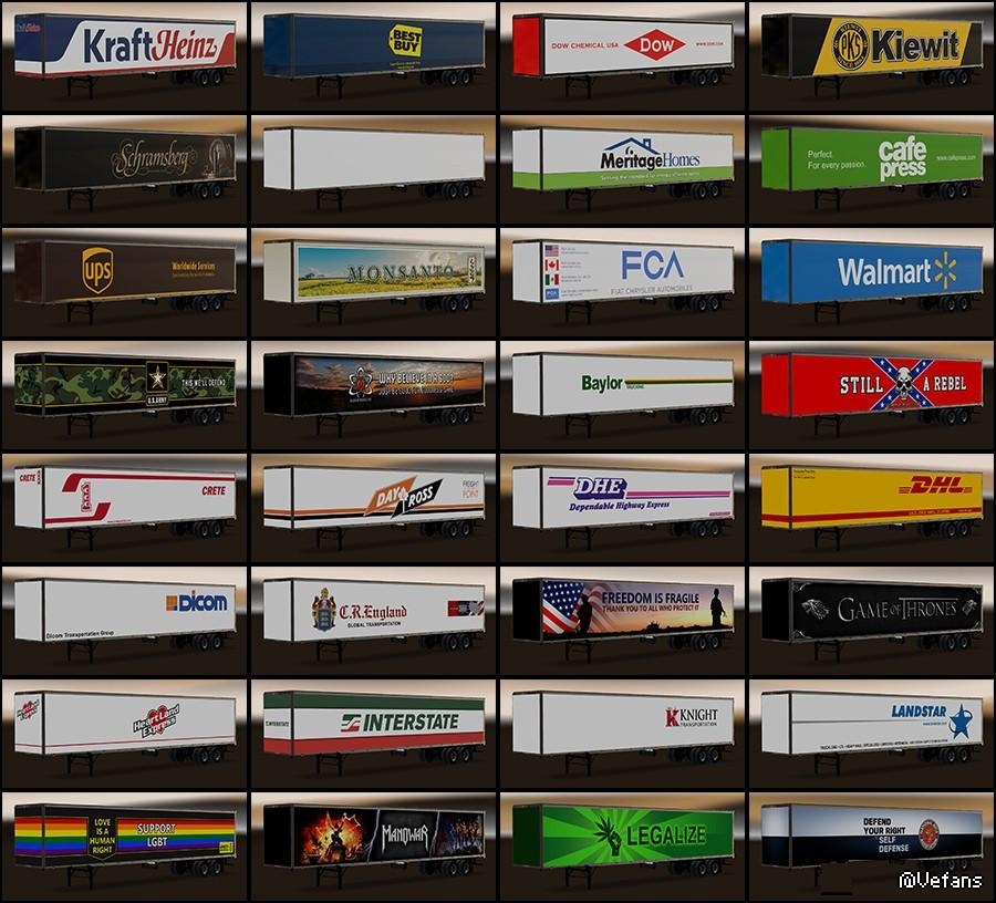– All trailers have a default cargoes and support “Trailer selection” menu (except Bad Dragon trailer, it has a custom cargo);