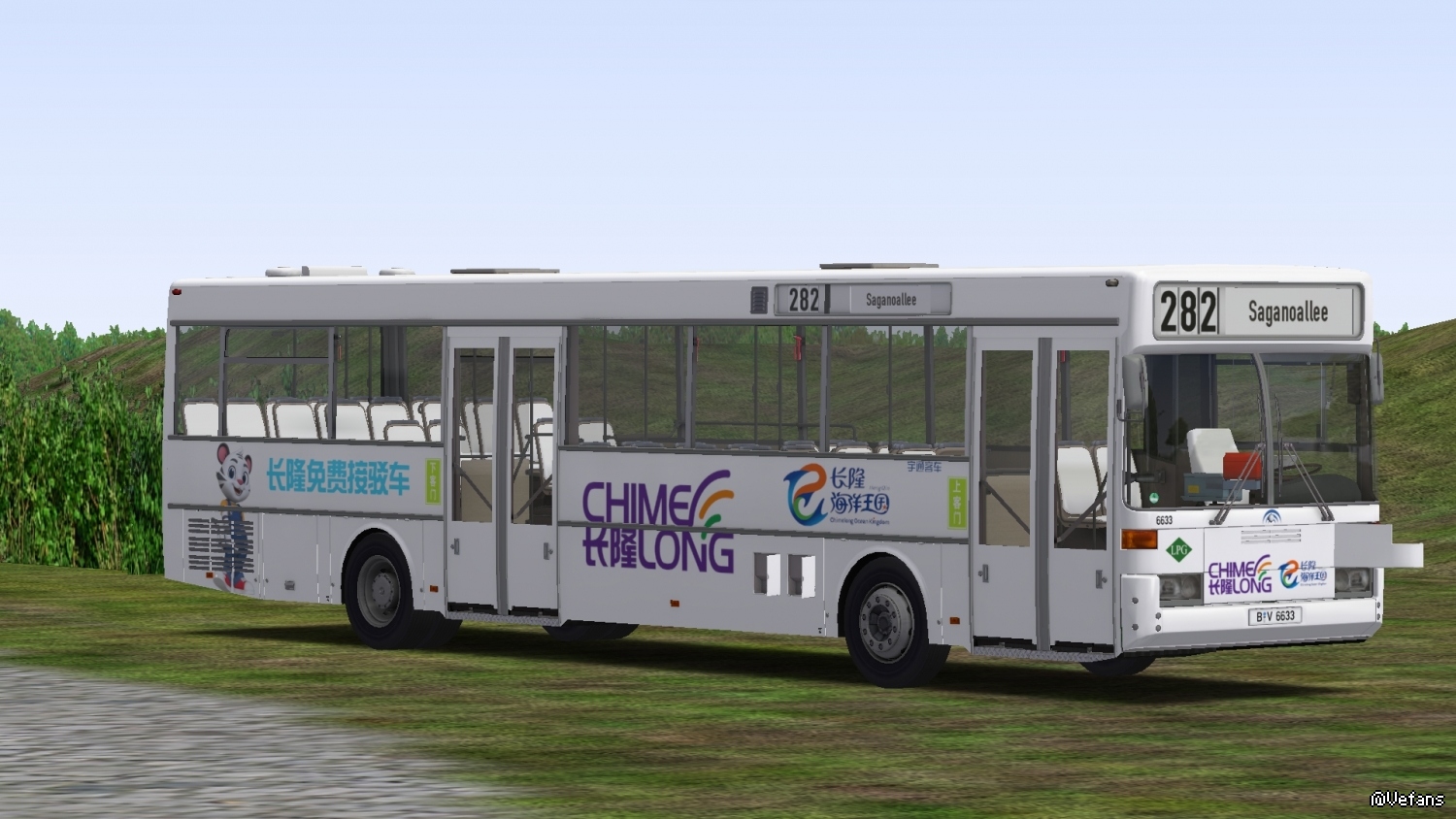 【介绍】:本涂装仿珠海长隆海洋王国免费接驳车涂装,适用于DLC Citybus O405