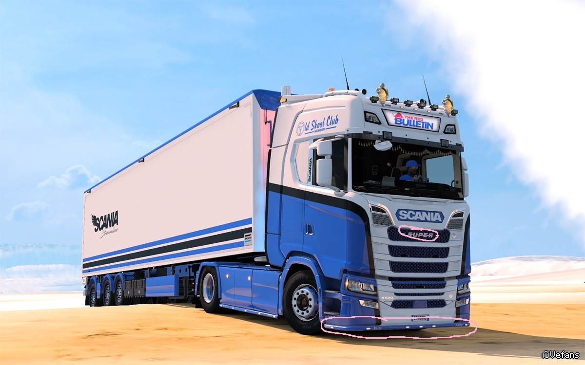 我记得已经告诉过你了吧?搜索:Scania 2016 Kelsa Bars 1.36    Scania r-s adons v5    Remoled_Next_Gen50k_addons 发光SUPER是:LED_Trucklight_V6.0