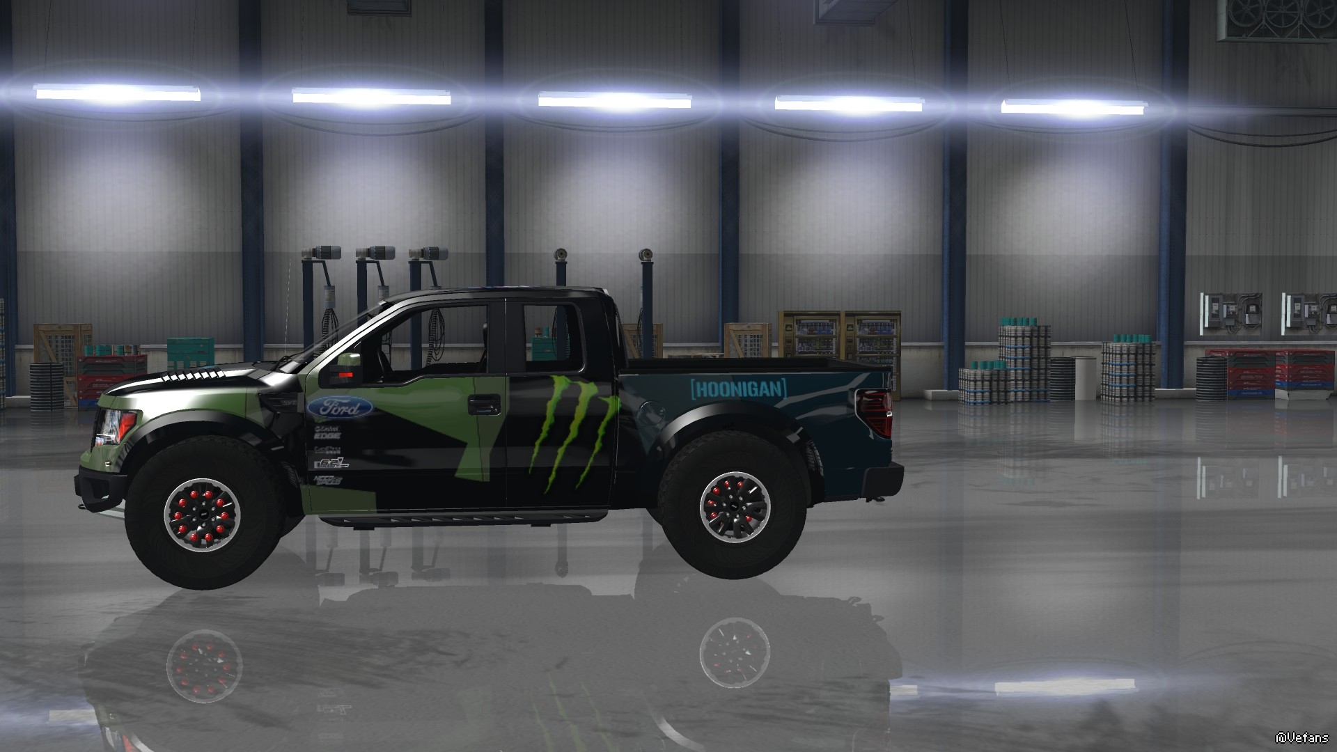 V2.2.1 Changelog: – Corrected many errors (transmission gears indicator, driver position, wipers, sound, tachometer, data…) – Added Police sound to use with beacon (press N by default to hear it) – New physic testing – Speedometer now show correct speedBUG : none ! If you find some bugs, tell me in commentary.Installation: Open the archive with Winrar 5.xx or 7Z and extract Ford_F150_SVT_Raptor.scs. Delete the previous version in your mod folder and replace with this one.