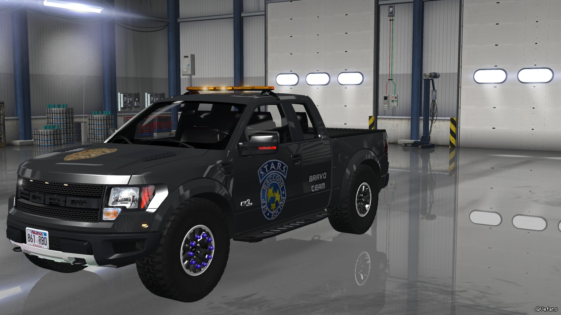 V2.2.1 Changelog: – Corrected many errors (transmission gears indicator, driver position, wipers, sound, tachometer, data…) – Added Police sound to use with beacon (press N by default to hear it) – New physic testing – Speedometer now show correct speedBUG : none ! If you find some bugs, tell me in commentary.Installation: Open the archive with Winrar 5.xx or 7Z and extract Ford_F150_SVT_Raptor.scs. Delete the previous version in your mod folder and replace with this one.