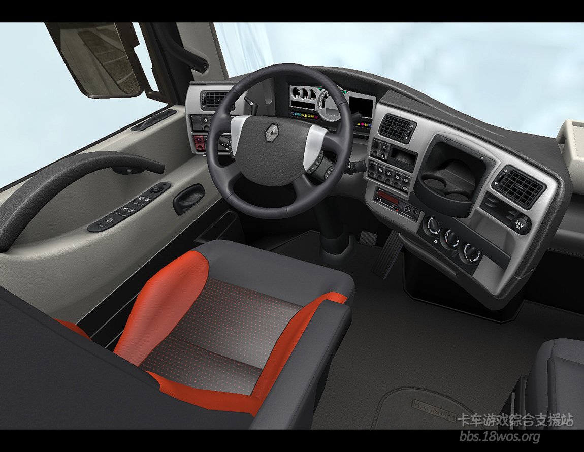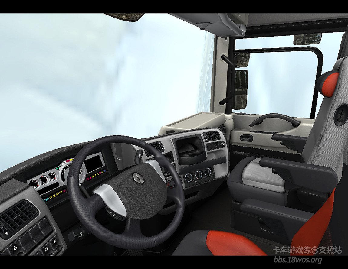 在我们细心的观察下,发现一个问题,也是多年来《欧洲卡车模拟》系列一个疑问,与前作一样,游戏中的卡车默认都是自动排挡,并非与真车一样有排挡杆。我们由SCS官方所提供的驾驶室俯视图片中看到,雷诺驾驶室中并没有看到排挡杆,但是无论是否在后续的制作中添加上去,游戏中将提供两种驾驶体验,那就是自动挡和手动挡供玩家选择。