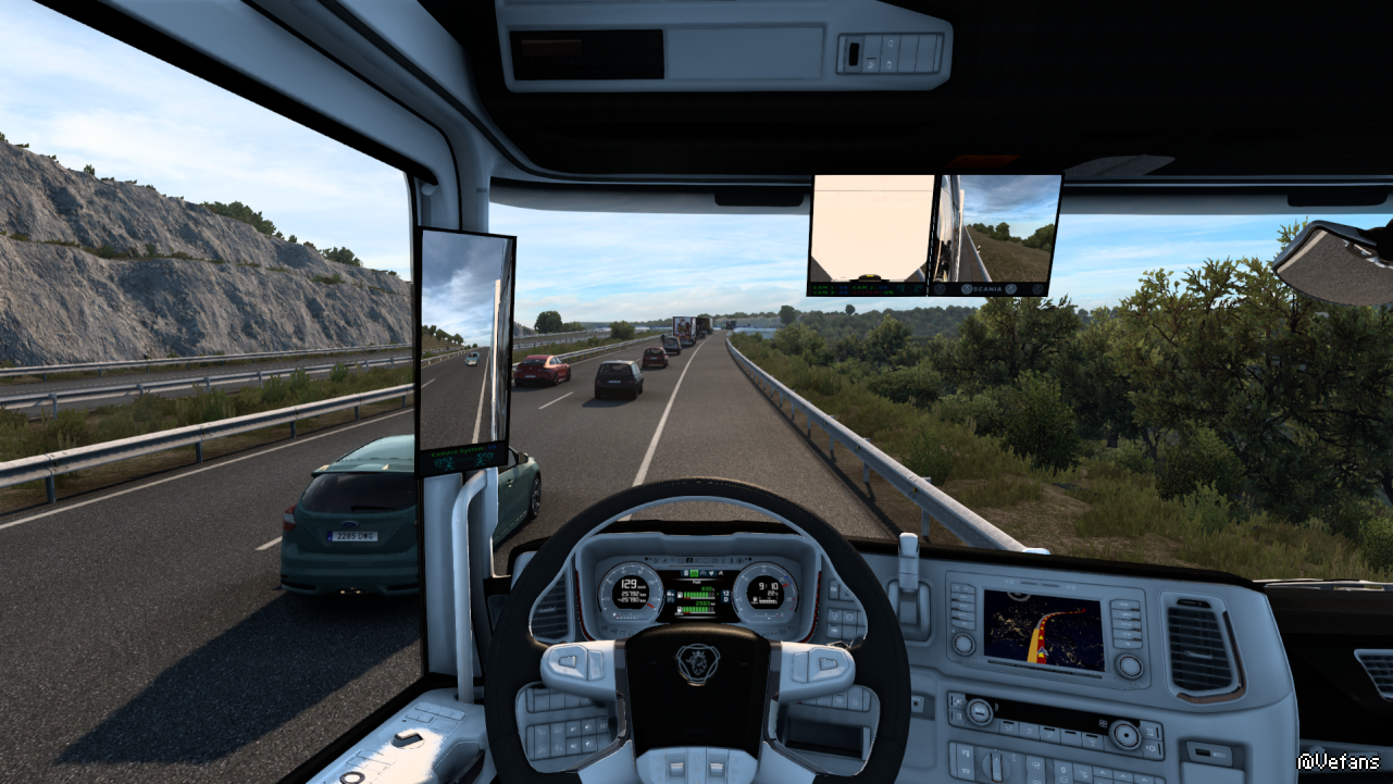 Custom dashboard for the Scania R & S of 2016. Re-arranged elements to have more information at a glance. Larger font sizes make it easier to read. Also has steering animation.