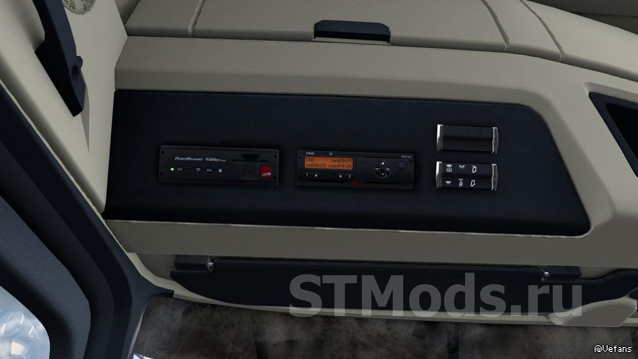 Мод представляет собой полную переделку стокового интерьера Mercedes-Benz Actros MP4.