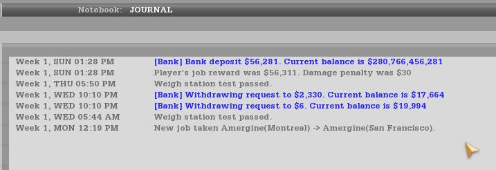 我在高级难度里新建了一个车手,从蒙特利尔拉了趟汽油到洛杉矶,得了5600元,我想问一下银行的Current balance是怎么回事?一开始我以为看错了