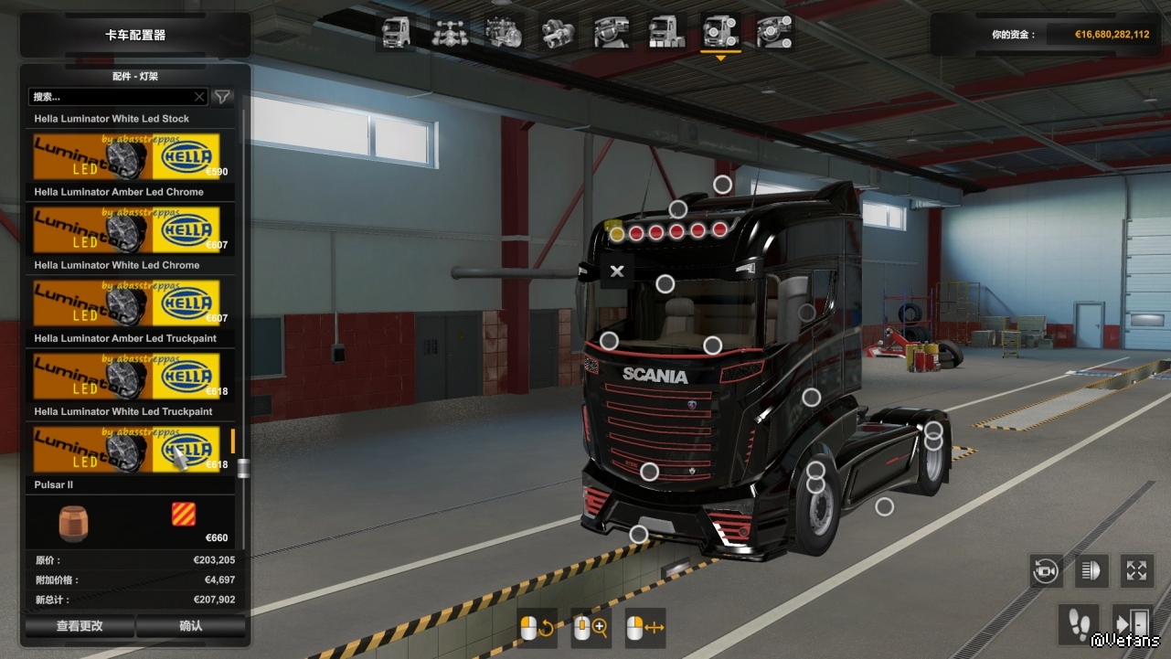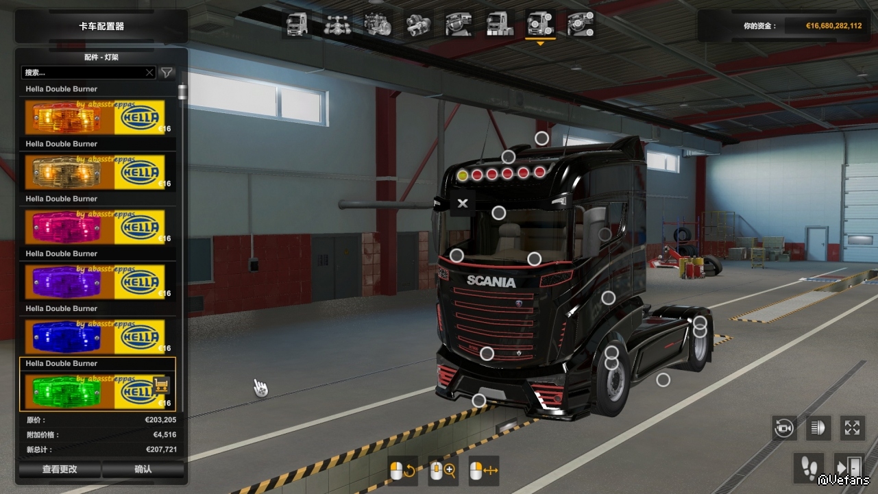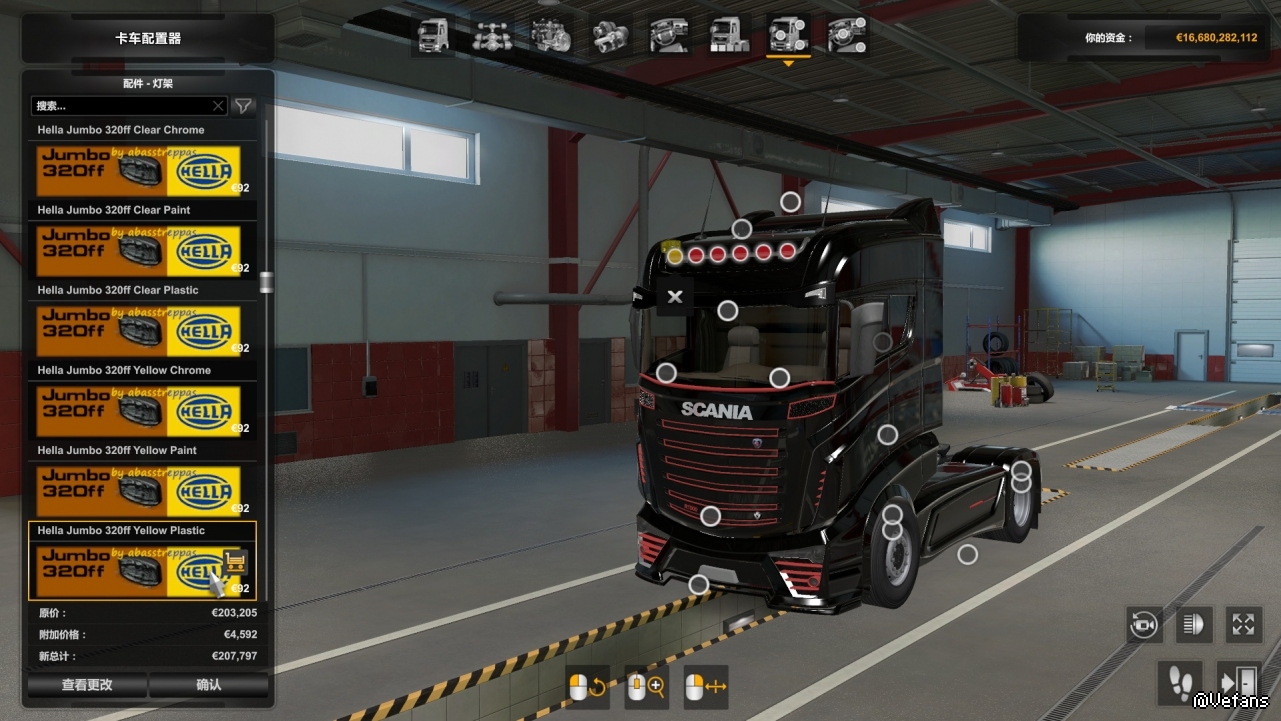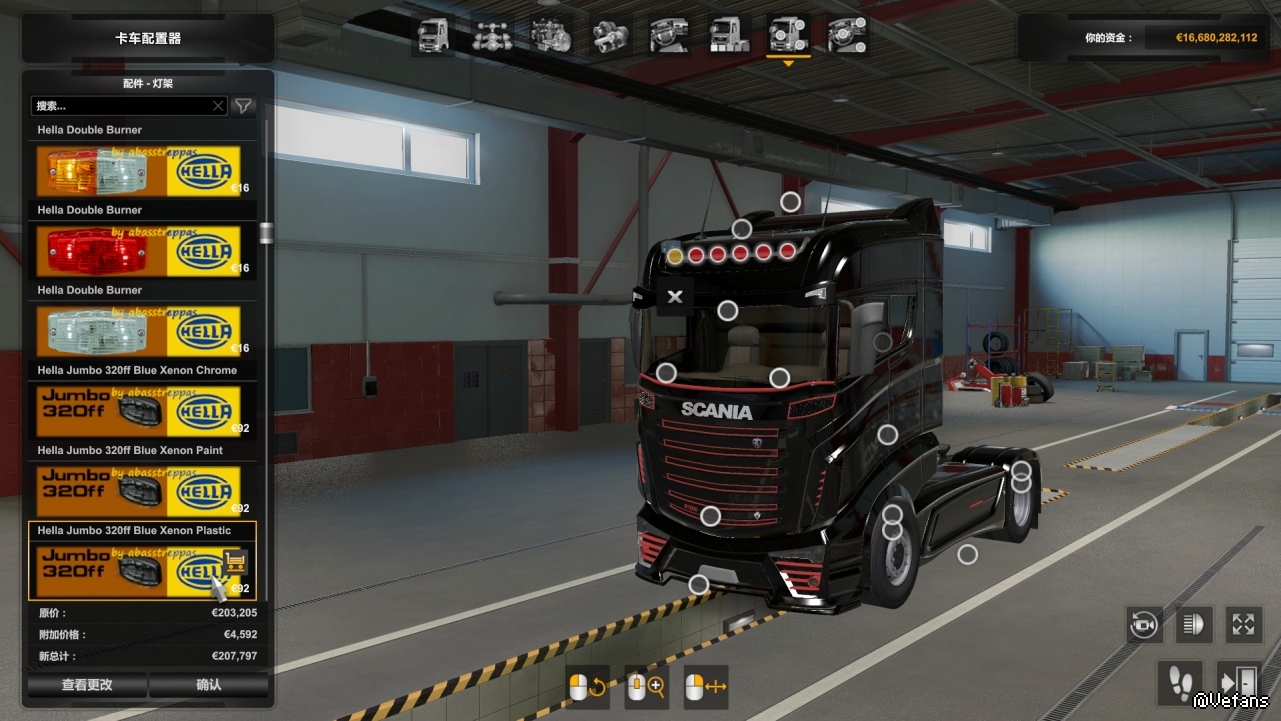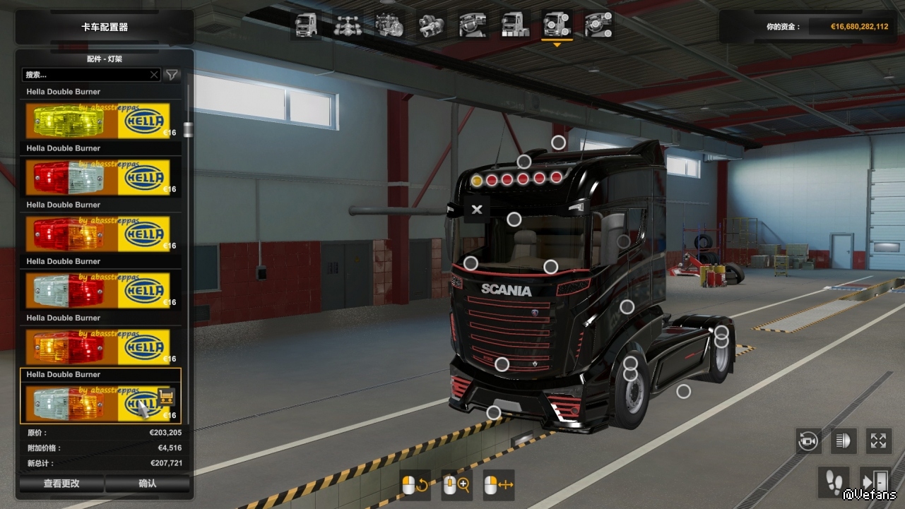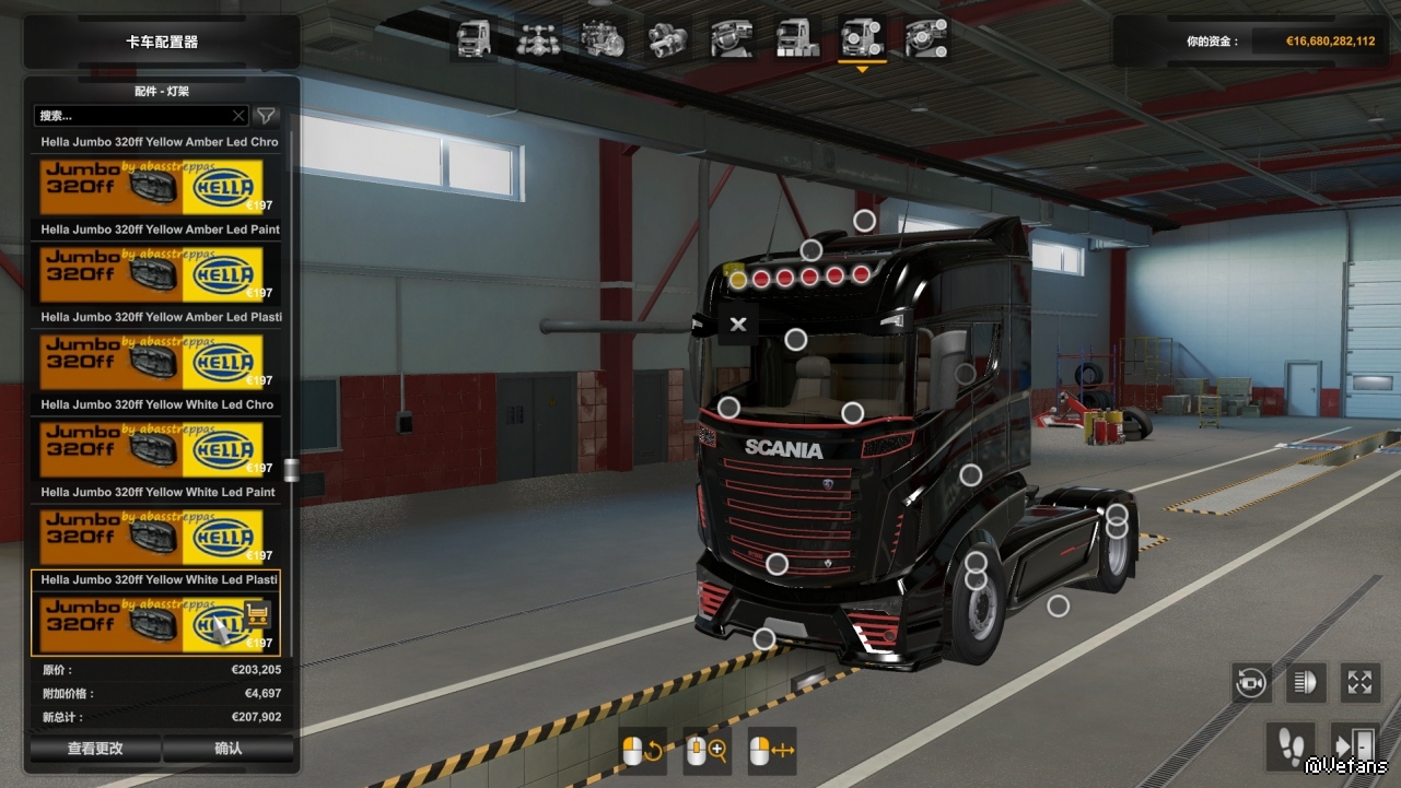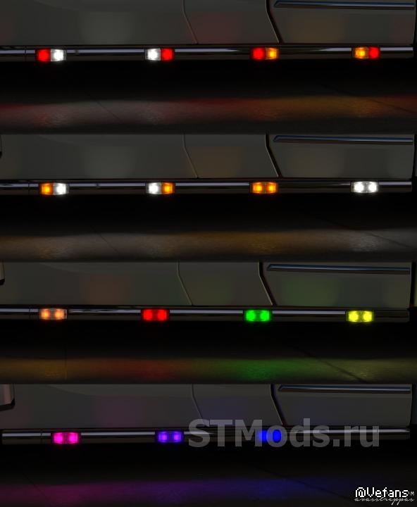 Также включает модифицированную версию «бампера» для Scania RS от RJL, которая переворачивает 4 средних слота, и поэтому вы можете «повесить» лампы там.