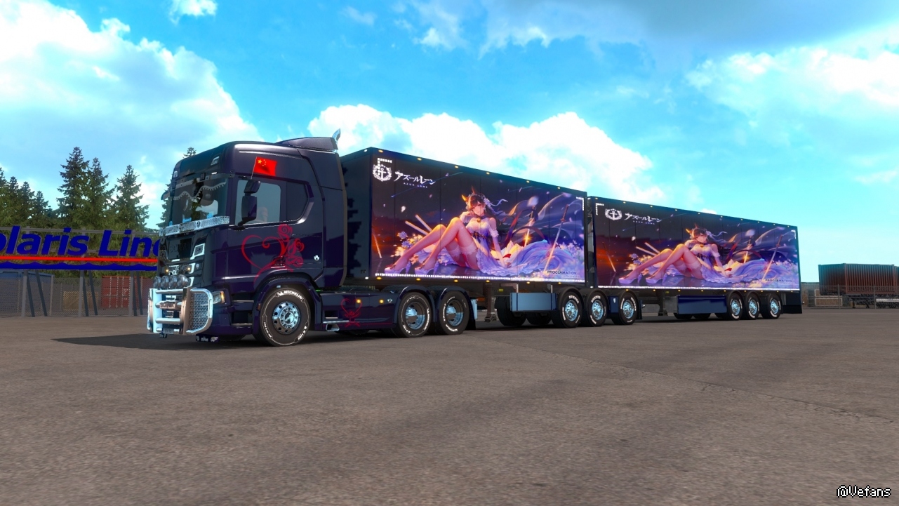 介绍:这是继上次本人的二次元后又一个次元涂装包,第一个品牌自购拖车包含8个碧蓝航线,8个少女前线,总计16个不重复涂装。用于货柜干货冷藏和双节单节。其他类型请自行测试。这是本人出院后献给朋友们的国庆礼物,虽然它来的有点晚。也谢谢你们的使用。