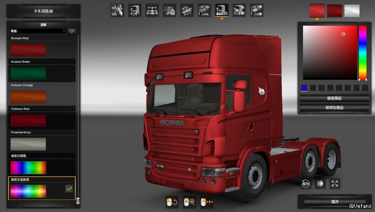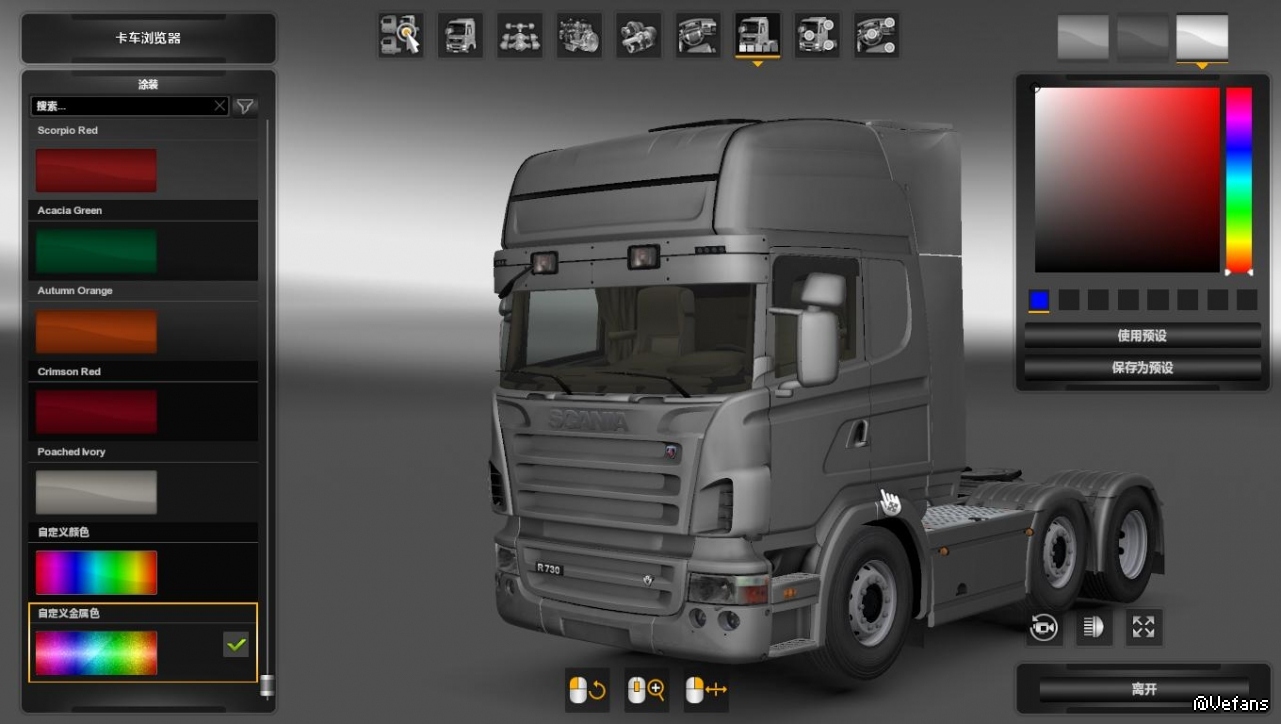 【介绍】:为斯堪尼亚R2008卡车增加金属喷漆,优先级需高于车头本体