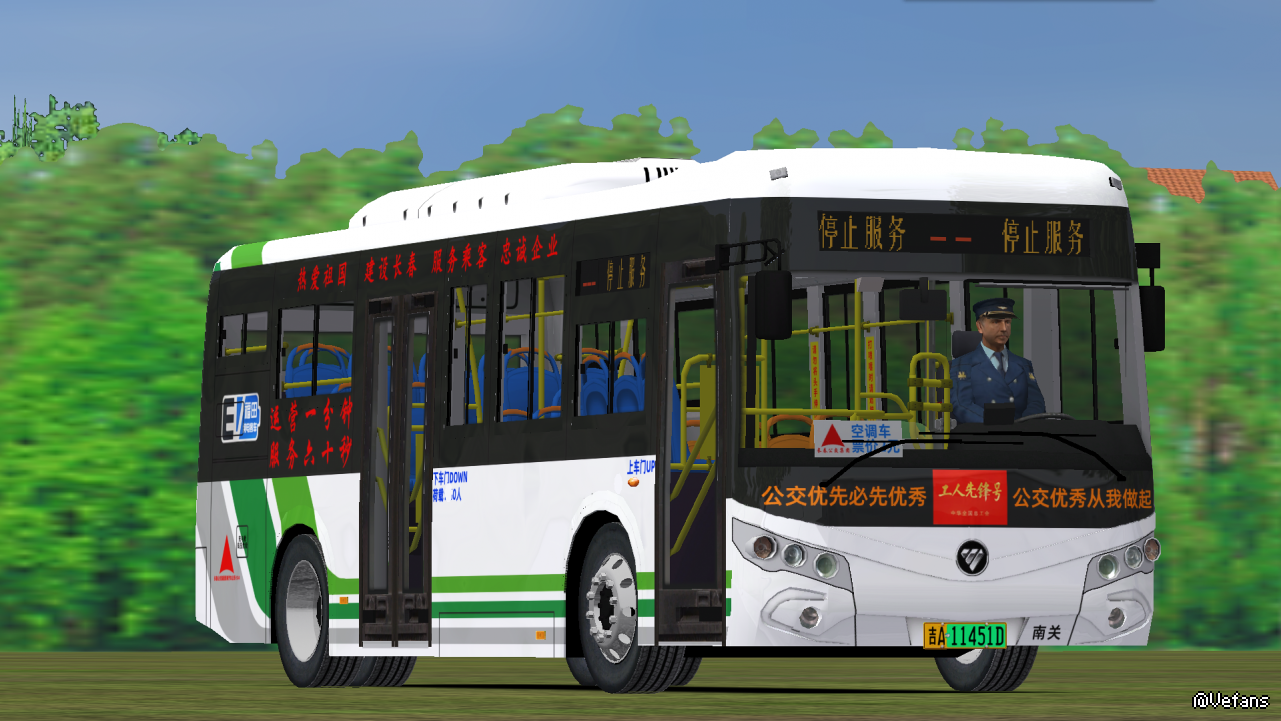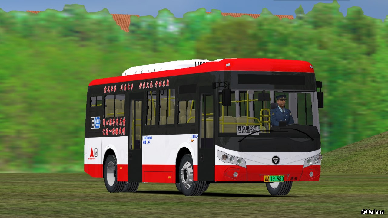 公路版:长春公交集团电车公司(现实里电车公司的客车涂装也是上面的三色条。不过为了整点特色,本涂装仿的是电车公司的有轨电车涂装)