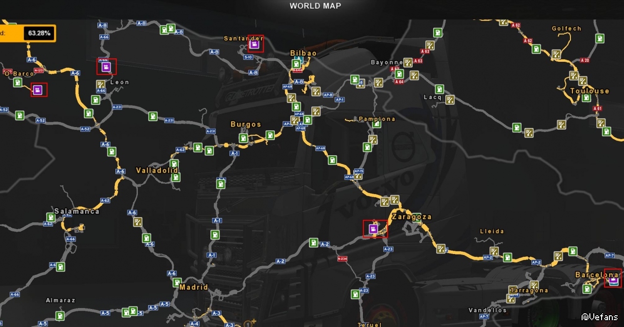 探索伊比利亚半岛所有观光点,共15处。见图中红框的摄影机图标,未发现之前是问号,按图索骥即可。 ets2_20210413_161434_00.jpg (423.02 KB) 2021-4-13 19:16 ets2_20210413_161451_00.jpg (444.88 KB) 2021-4-13 19:16 ets2_20210413_161507_00.jpg (71.54 KB) 2021-4-13 19:16