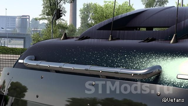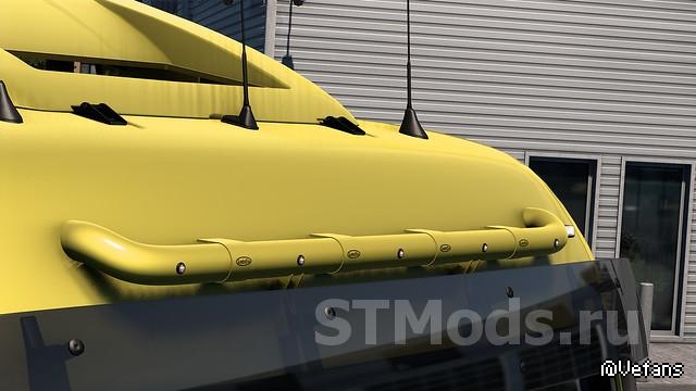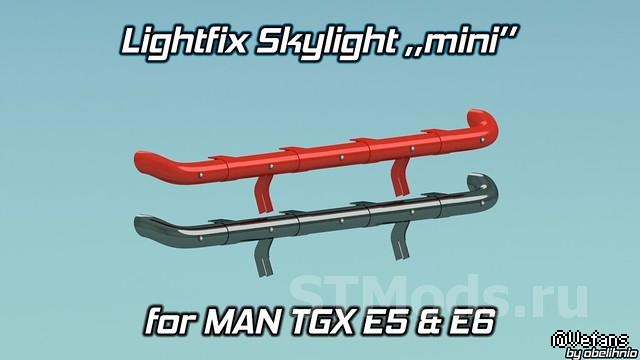 Mod добавляет световую панель Lightfix Skylight для грузовиков MAN с слотами для ламп, имеет хромированный и окрашенный внешний вид.