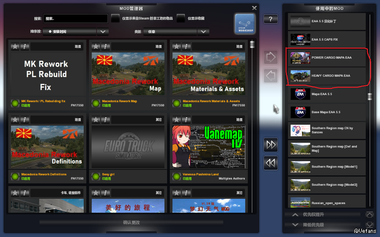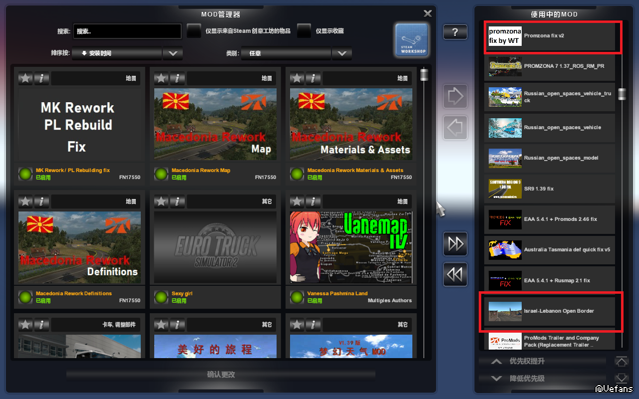 你红圈圈的几个mod,EAA那两个无所谓,只不过是南美的特种运输,上下的几个我看大部分是地名的英文化。就是把不知道什么语的地名给英语化的,也无所谓。有没有都行。还有个open border的,是以色列边境检查站的mod,也是有没有都无所谓。speed of snow,是毛子图开放空间的雪花速度的mod,更是有没有都无所谓。