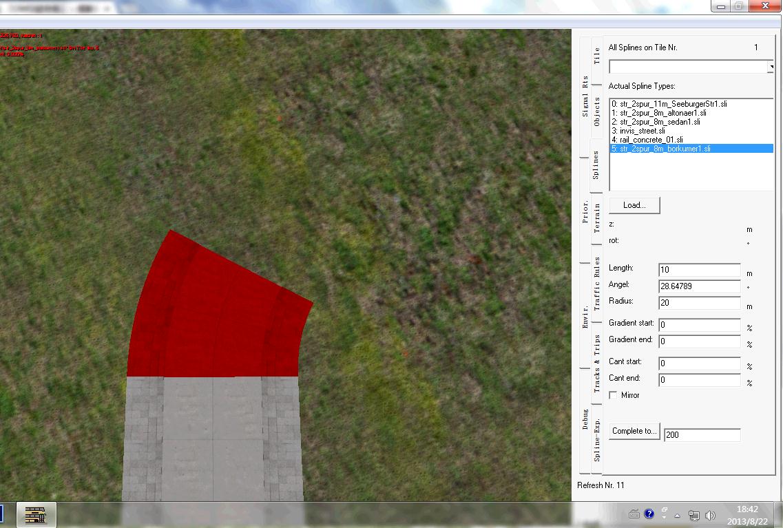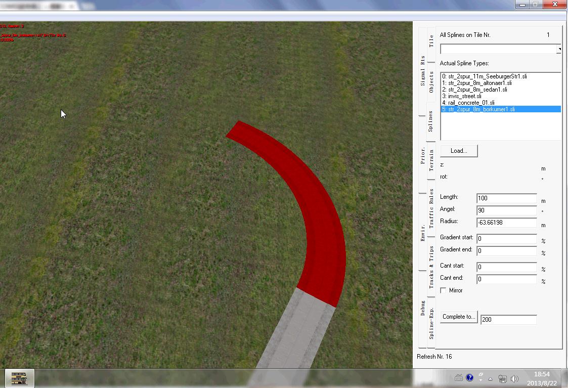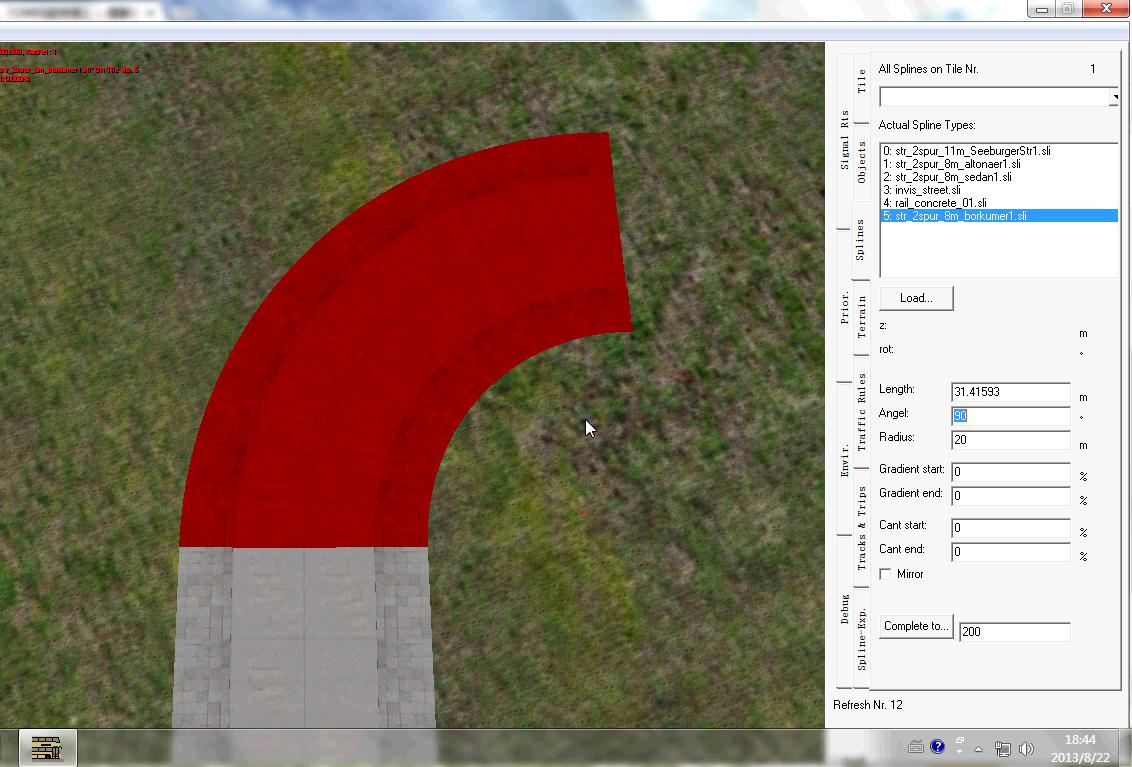 弯道半径计算十分复杂,在OMSI编辑器中,如果在写入半径后又修改角度(如图1),OMSI便会修改路长,以达到制造者想要的角度(如图2)