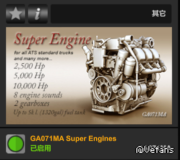 购买mod里的发动机后,邮箱会自动变成5000L的,推荐打开真实油耗