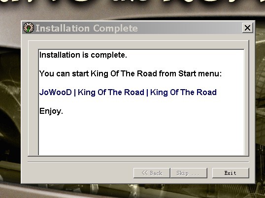 按Exit退出,在开始菜单点击JoWooD->King->King of the road进入游戏