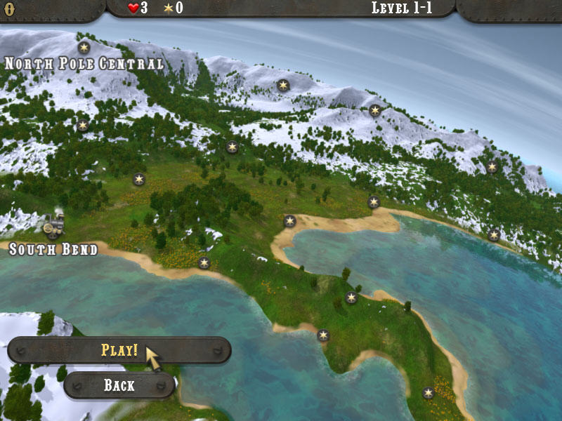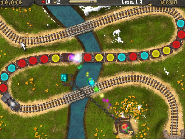 圣诞火车,一款类似祖玛玩法的消除同色圣诞礼物的游戏。一年一度的圣诞节已经来到了,满载着圣诞礼物的火车鸣响的清脆的汽笛声开了过来,不过这次的礼物要大家动手动脑才能得到哦。这款游戏的玩法类似祖玛,要发射(左键)同色的彩珠到列车的车厢才能消除得分,更为方便的是就算射击有偏差,还可以使用抓子(右键)取回再次发射,游戏漂亮的画面,有趣的宝物和活泼轻快的音乐都让游戏充满了圣诞气氛。游戏的操作类似祖玛游戏,不过游戏还设置了抓子的工具,可以取回射出去的彩珠。每当你成功的消除了一列火车的彩珠后,小火车头就会呜呜的一路驶向终点,非常有趣。在游戏中会拜访15个不同的城镇,游戏超过60个关卡,非常适合全家人一起进行游戏。