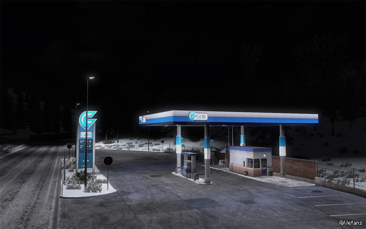 7。夜色下的GOB加油站。