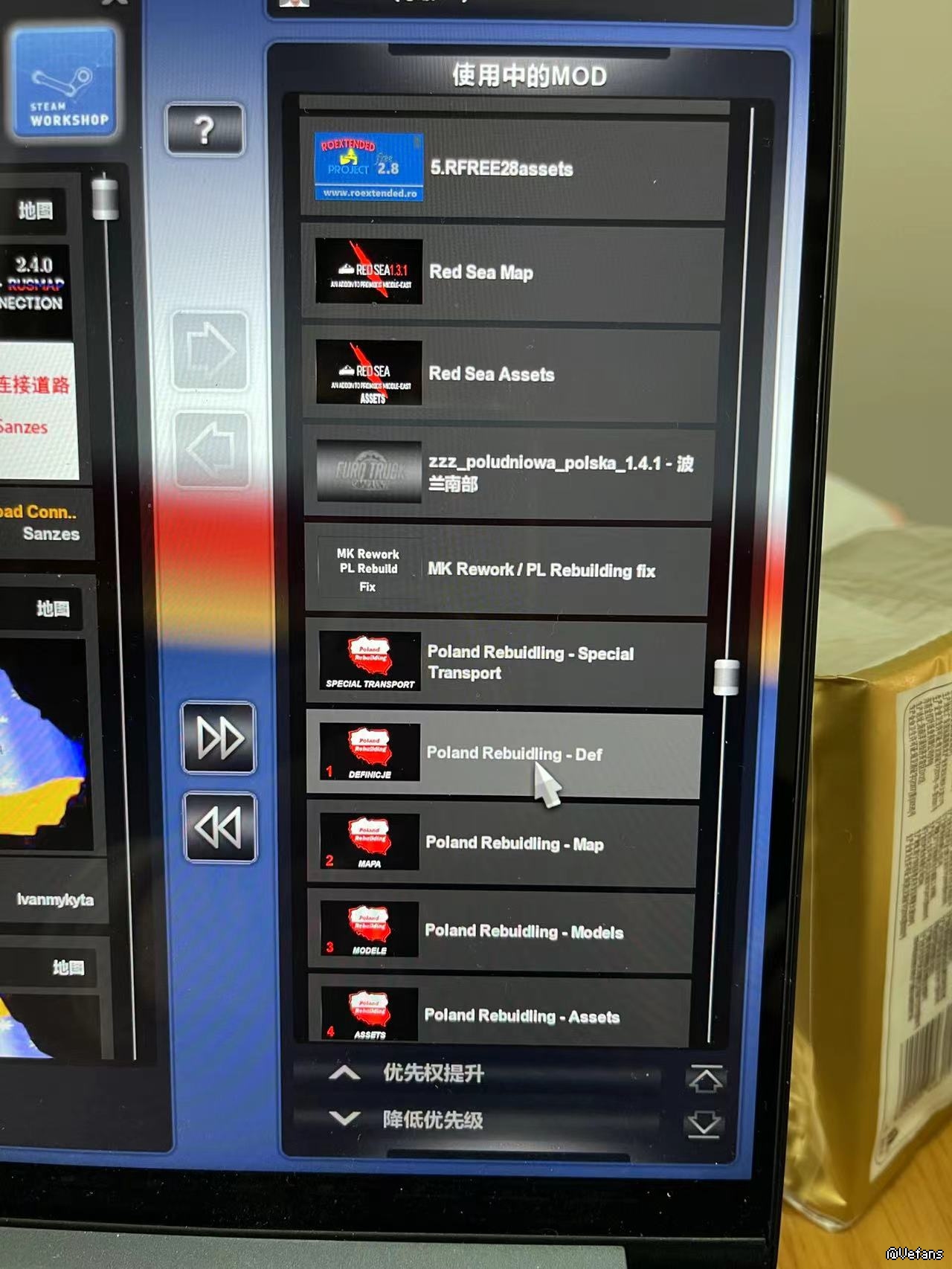 按照论坛上的高手们给出的大地图的MOD排序进行游戏,目前的问题是,经常在读取存档的时候,一直提示导航信息更新,要等待很长的时间才能进入游戏,因此把我的MOD顺序发出来,让高手们帮我看看到底存在问题,多谢。