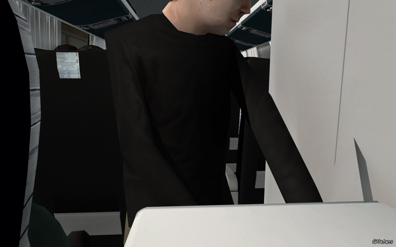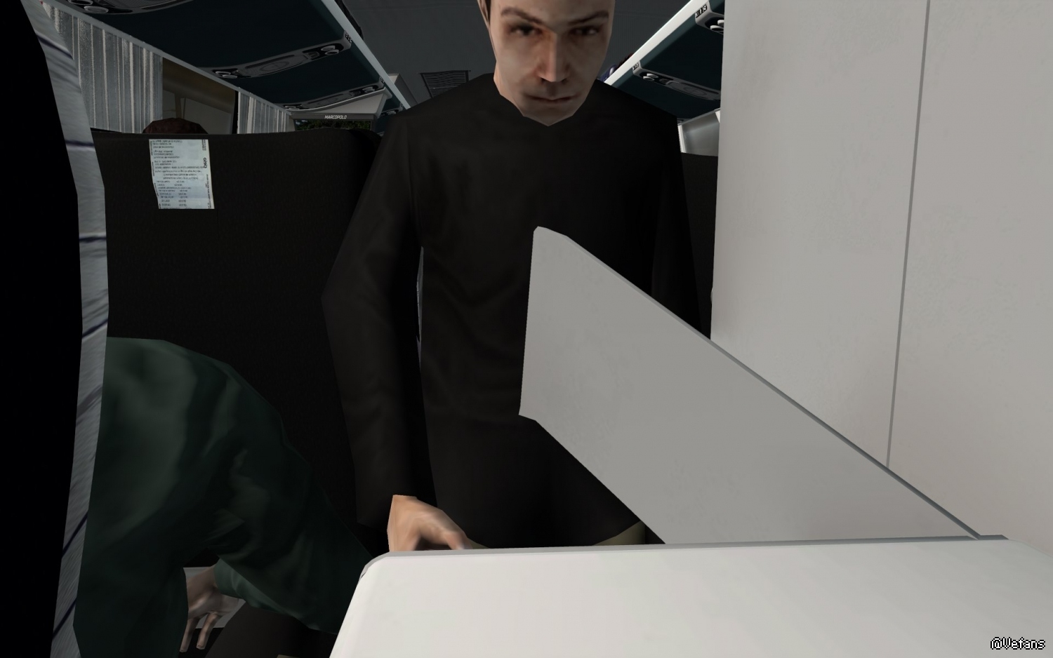 这辆巴士不错,乘客上车后有一位乘客上洗手间,完事后还不忘洗手,然后回到座位。