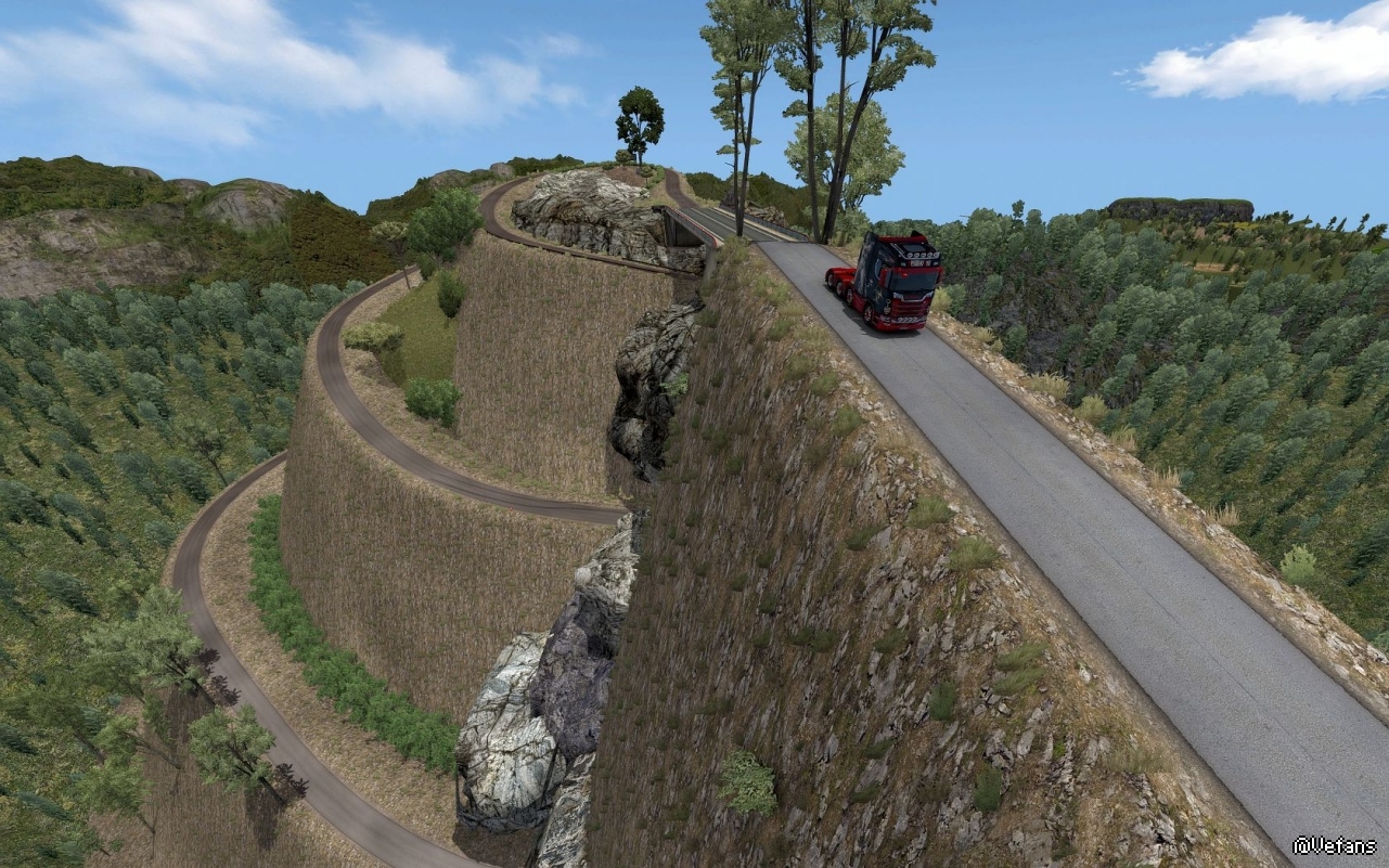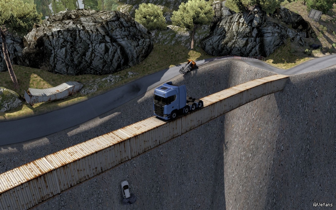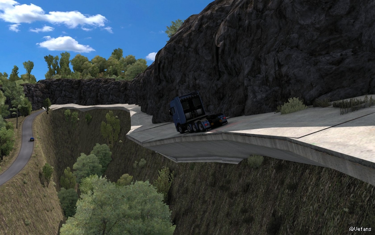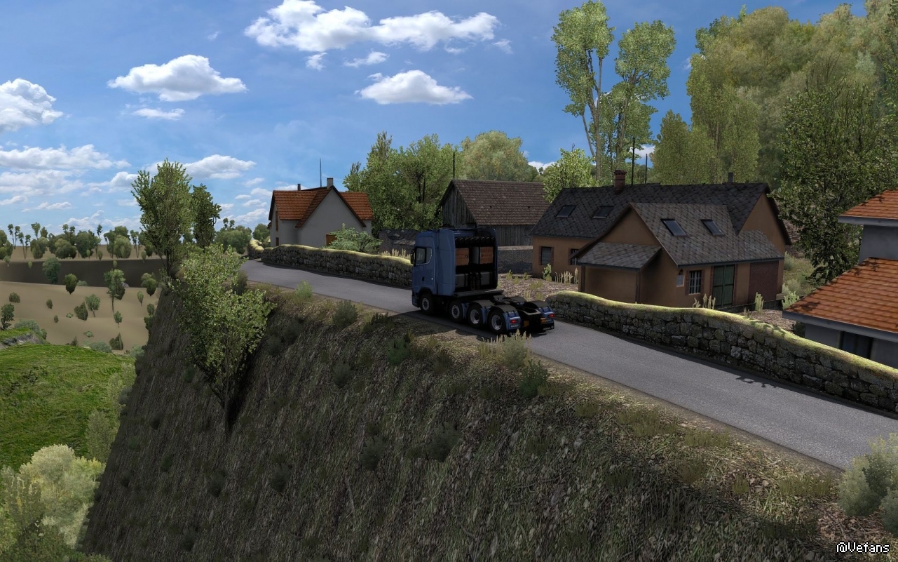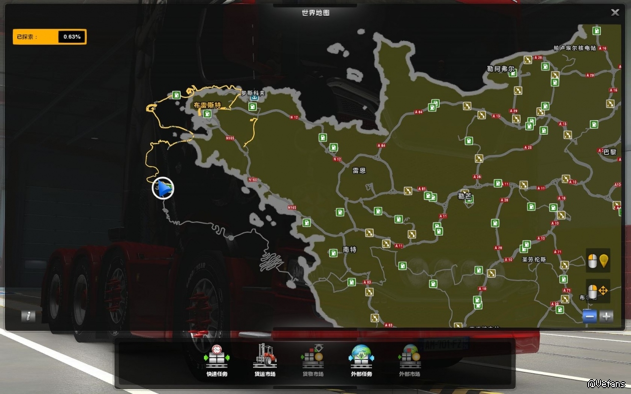 ”。我安装后也是找不到。后来在外网下载了一个存档才找到。就在法国西北部边境上。其实是一条虚拟的,弯弯曲曲的极端路线。从布雷斯特可以进去。里面有两三个货运站,但似乎无货可运。目前我还未走完这条路。从地图上看,这条路一直走下去是无法回到法国的。只能往回走。