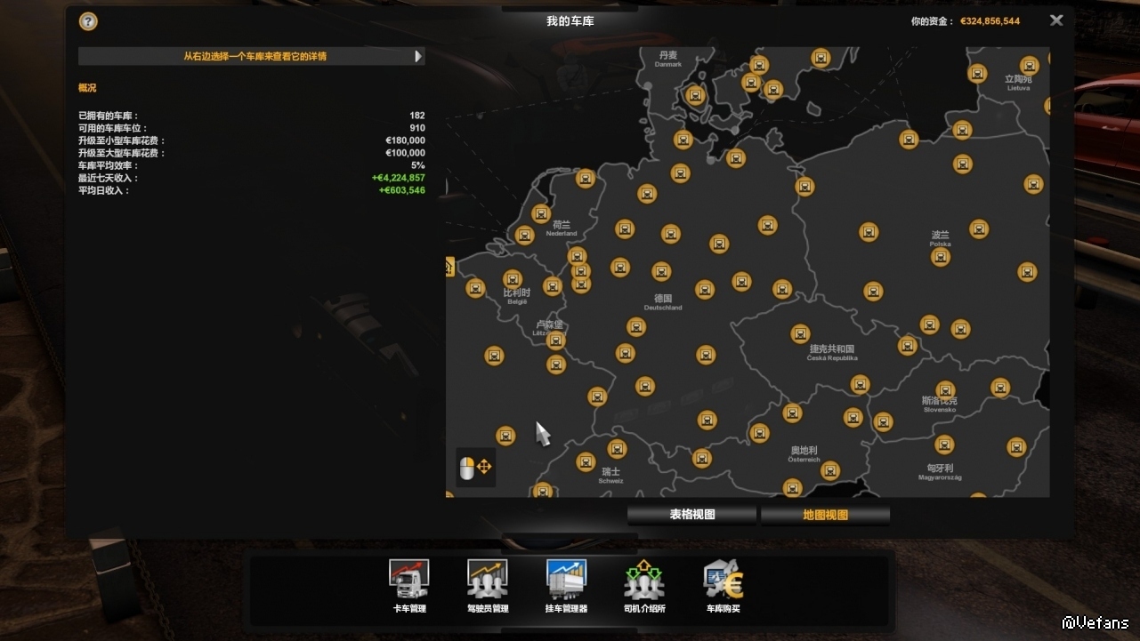 每型号卡车各3辆,全750马力,本人精心改装过,司机评级全10.0