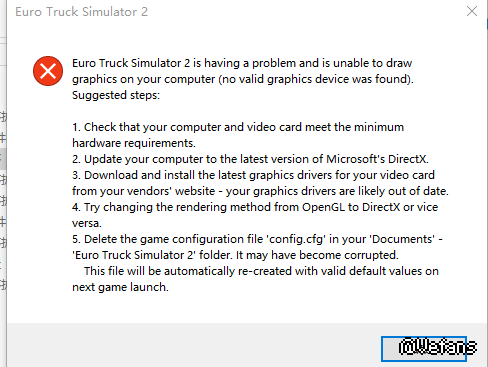 5.删除在My Document\Euro Truck Simulator 2\config.cfg文件可能这个文件已经损坏。这个文件会在下次开启游戏时自动创建。