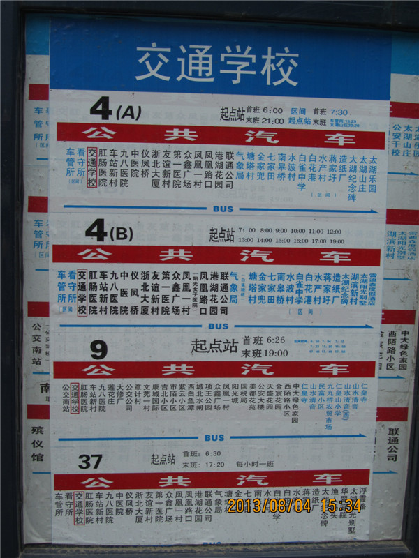 第四站,交通学校,照例,放图(见图34),交通学校站是4A,4B,9,37路的起点站,30路的途经站。4路,不管是A线还是B线,都用亚星,车队中有两辆海格10.8M的6109G(只有两辆),亚星型号是JS6851GHCJ,就是图10中红色突出的车。(内饰见图27,涂装见图海格见图29-33,图35-37),来点杂图(见图28,38、39、40)