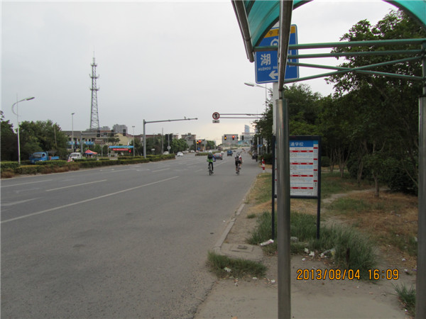 第三站,联通公司,这是我们这里14路的起点站。也是4A,4B,7,16,17,37等线路的途经站。(站牌见图16,与图1不同,图1是最近几年我们这才开始用的,由于技术不成熟,像这样的站牌我们这不多。)说到了这里,就不得不说一下14路公交车,它从联通公司出发,到东湖家园,途经市中心地区,比如浙北大厦,仪凤桥等站点。14路公交线,采用海格车,自己看吧~~~~~(见图15,图17~20),在等去下一站的车时,我又闲拍了几张,技术有点烂,大家看看吧。(见图21~26)