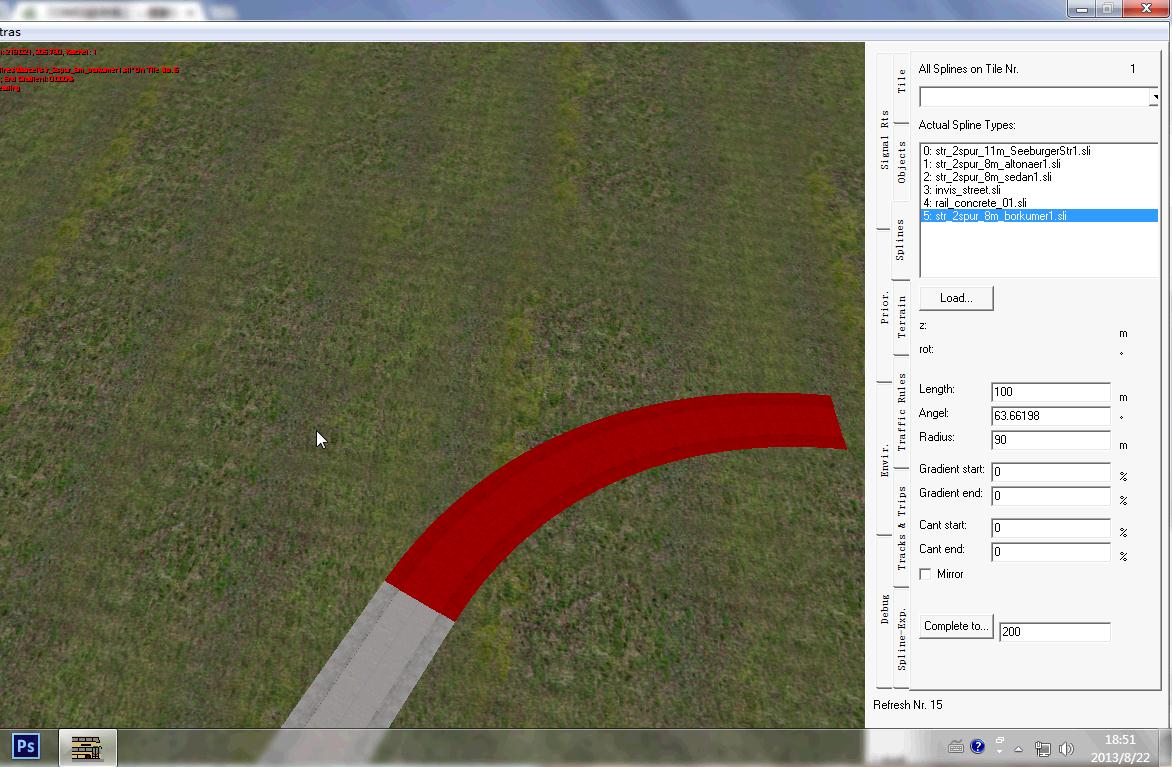 弯道半径计算十分复杂,在OMSI编辑器中,如果在写入半径后又修改角度(如图1),OMSI便会修改路长,以达到制造者想要的角度(如图2)