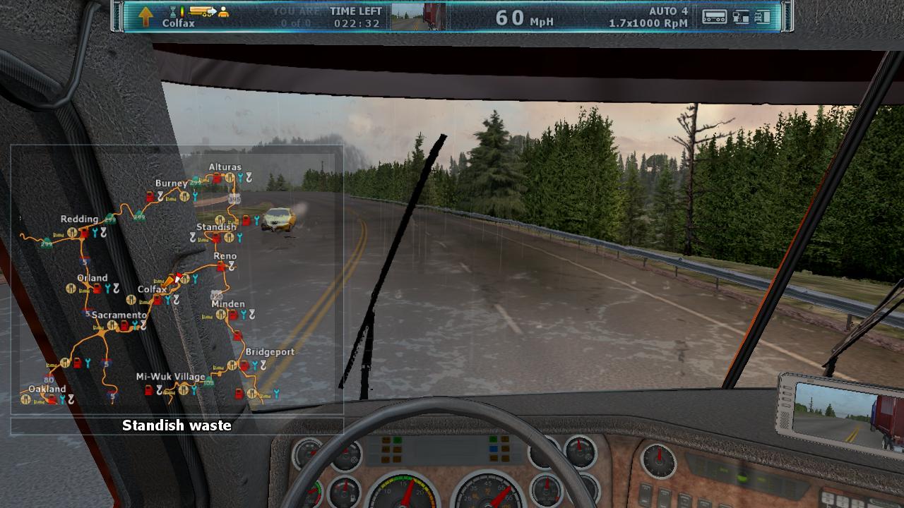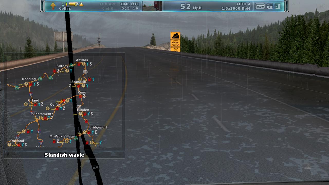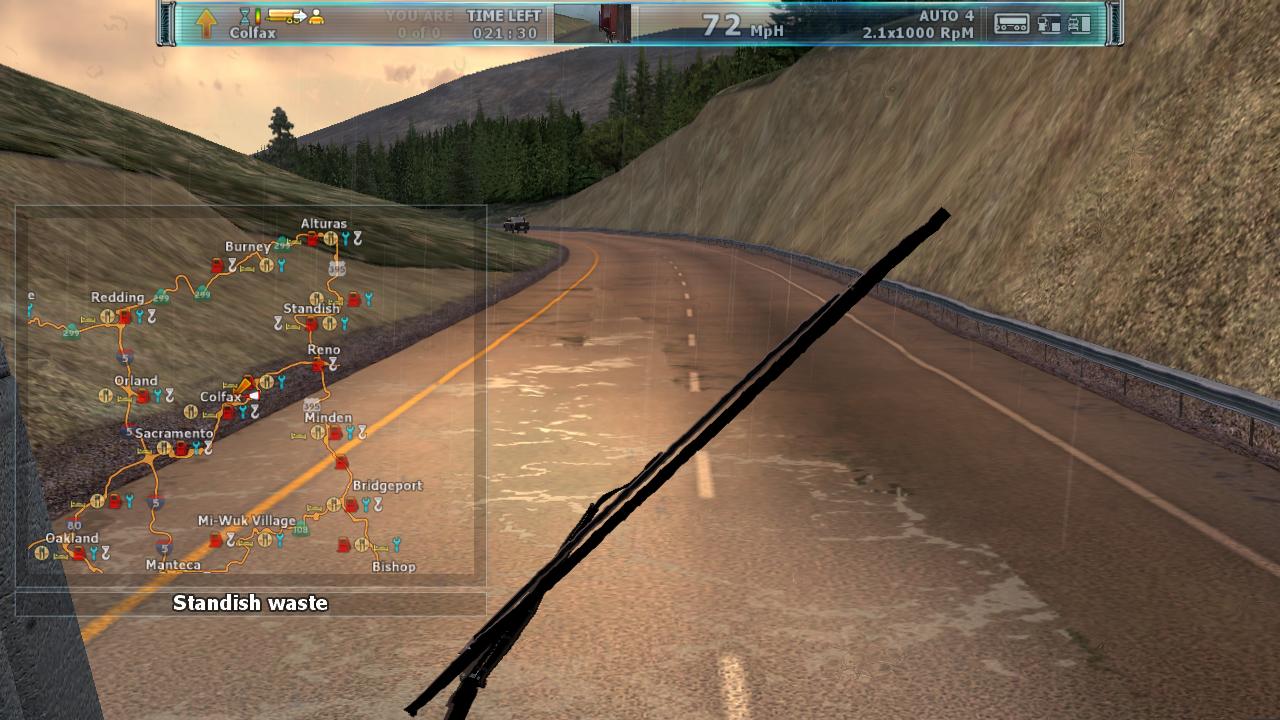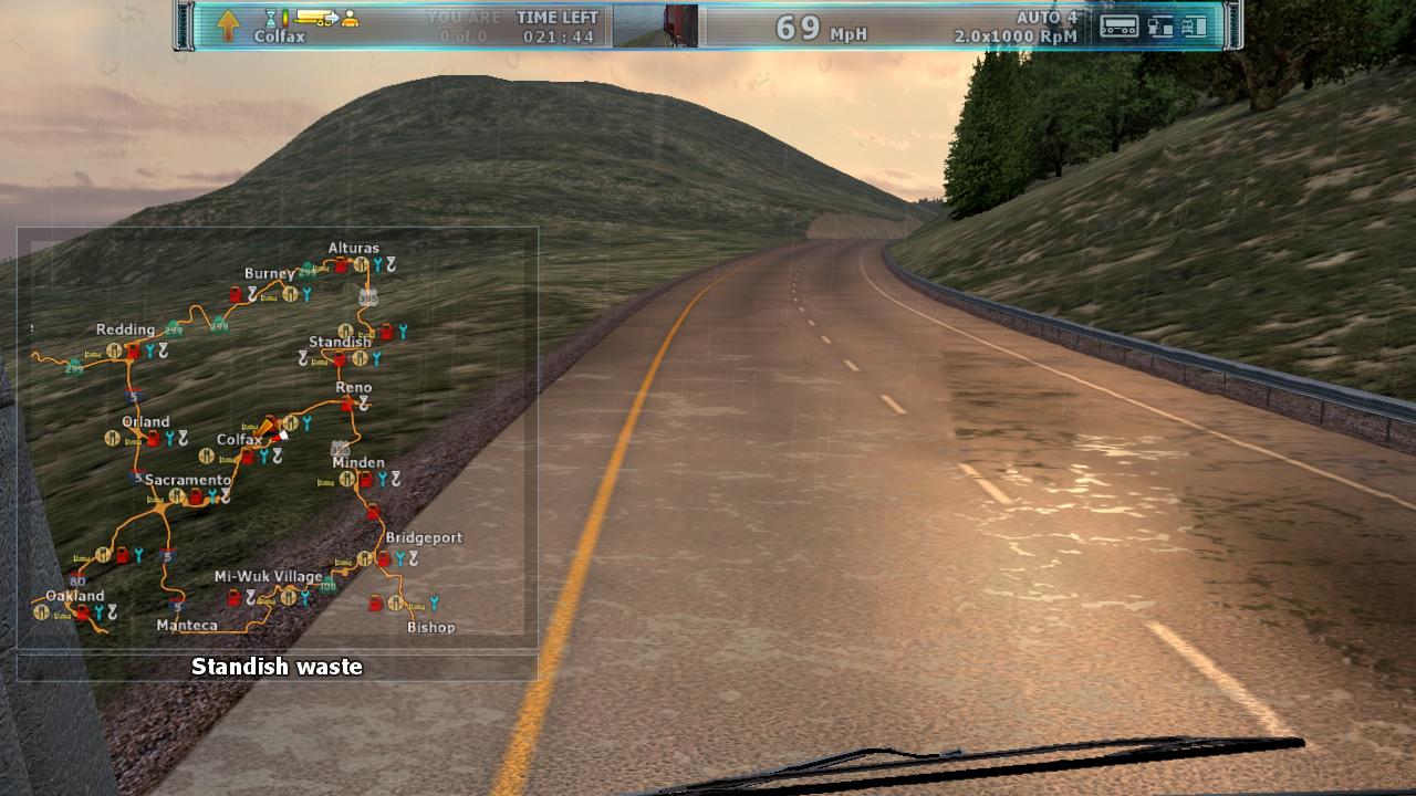 运行游戏,一切都是那么完美。对话也是英文的。界面什么都是英文的。到现在才玩1个小时。游戏本身没有任何问题。声音很逼真。游戏画面看着确实跟欧卡系列不同。最重要的是,物理效果太赞了!卡车会晃动、刹车会点头、而且外壳撞坏了会有不同程度的显示(刚开始由于键盘灵敏度调的不合适,把车头撞得副驾驶车门都开了,呵呵)