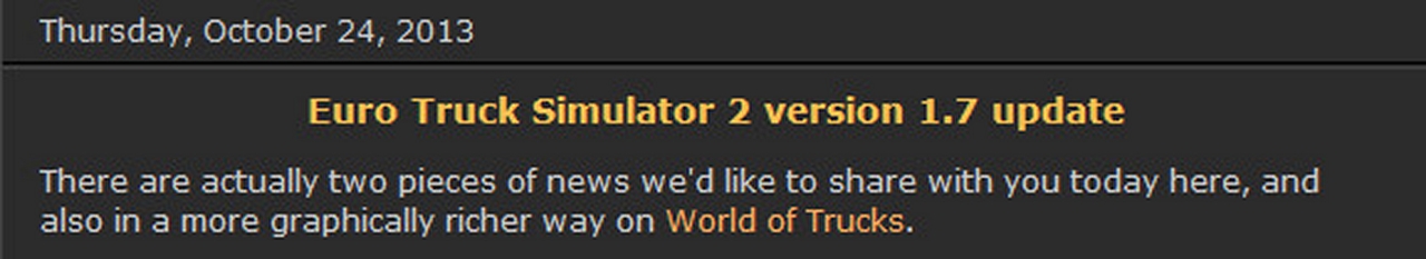 Euro Truck Simulator 2 version 1.7 update