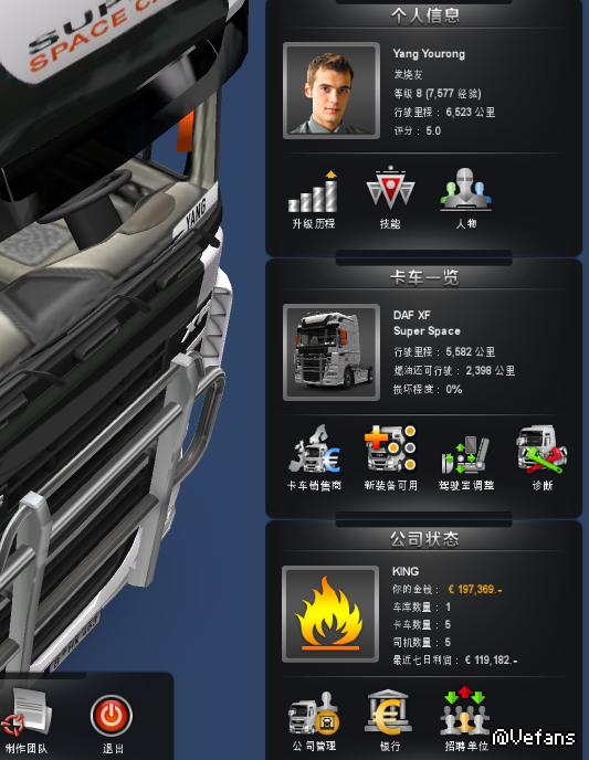 楼主有四名司机且配有卡车,并且四名司机等级最低的是6.5,可以帮玩家快速脱贫。