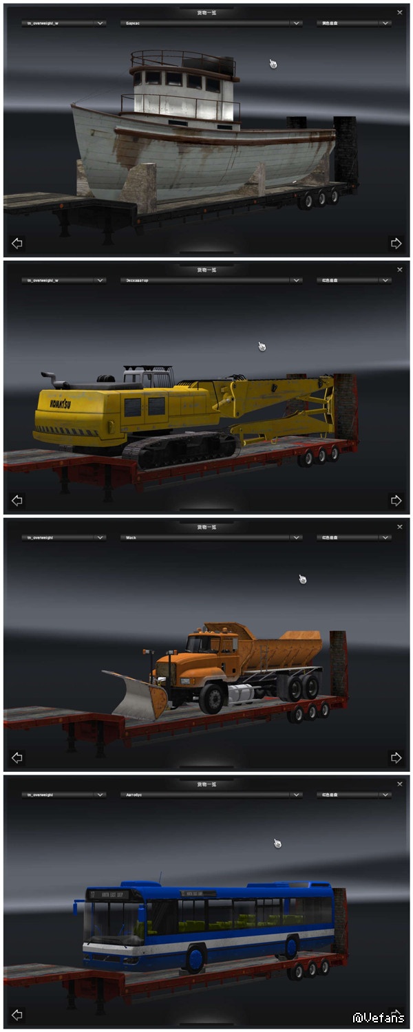 MOD分:车头.皮肤.货柜.地图.轮胎轮毂.其他附件类,共6类)