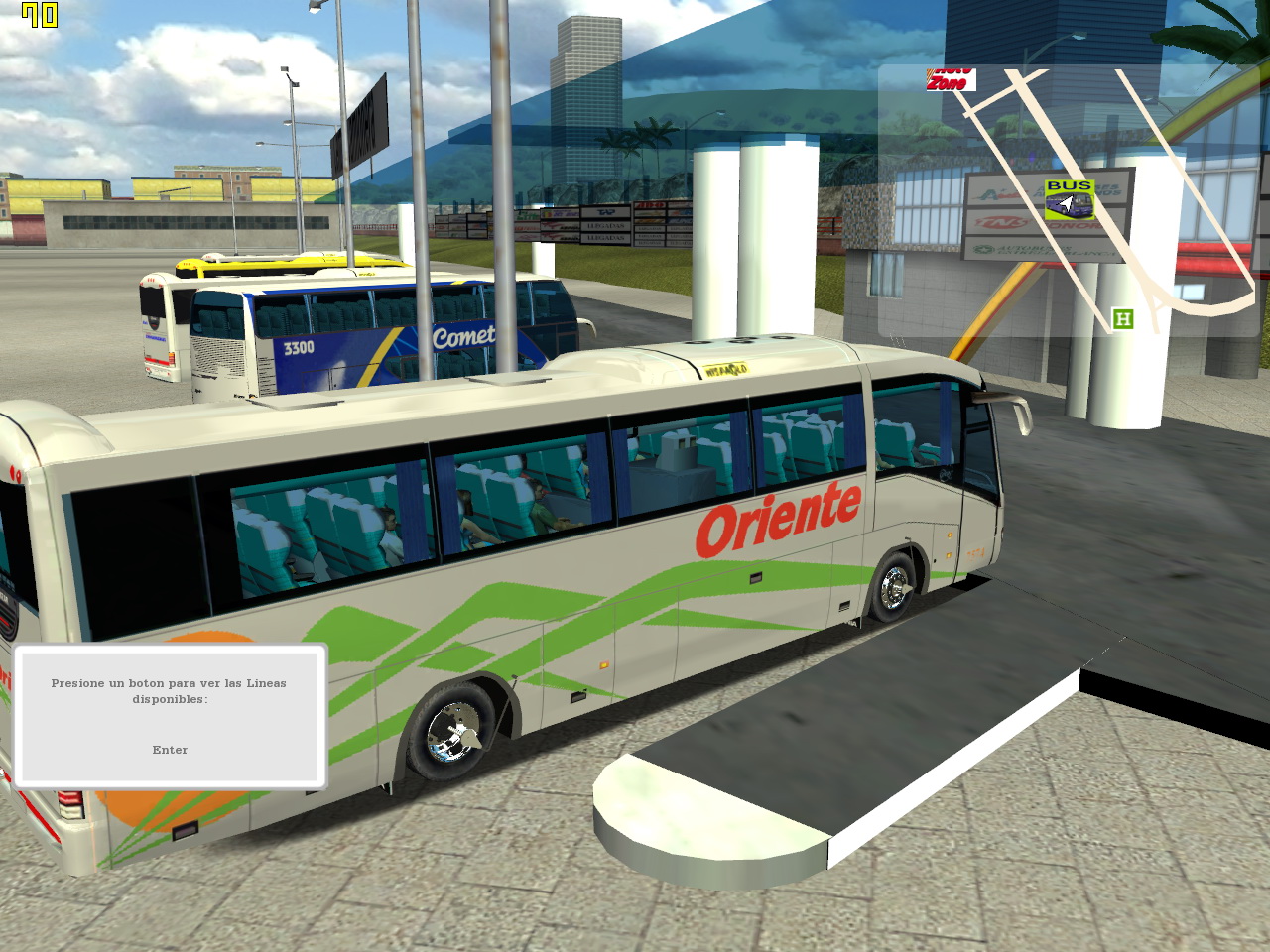 进入游戏后才发现差点错失了一个精品MOD,这个BUS MOD不知是属于哪个国家或地区语言的,反正不是EN语(但地图还是延用了原本游戏地图)。此MOD里的BUS数量挺多的,每种都有很多皮肤,而且非常精美。另一个值得赞许的地方要数BUS车站了,虽然素材不太精细,但是仿真现实客运站做的,比起以前的一个BUS MOD要大很多、真实,而且车站里有好几辆客车停在每个车位上。
