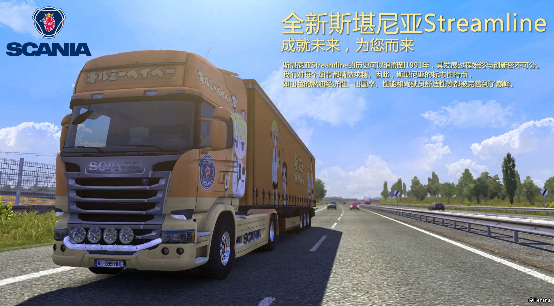 第一次嘗試SCANIA塗裝突然覺得和MAN不在一個難度等級有木有啊……光是UV圖我都崩潰了,只能先搞個愛殺寶貝的上去。