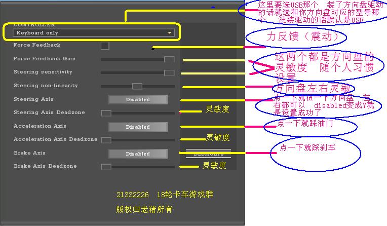 因为看到很多人都问怎么设置方向盘 我感到很郁闷 特此弄了个小帮助 以美洲长运为例 不知道是否绝对正确 但起码本人的北通瞬风3168以图设置 能正常的玩18轮 希望对新手有帮助