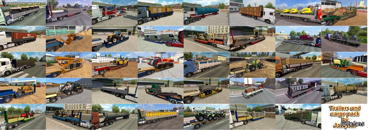 Pack adds in game 165 new models of trailers (different trailers by Kögel, Fliegl, Böse, Närko, Lamberet, Chereau, Schmitz, Bodex, Wielton, D-Tec, Fruehauf, Schwarzmüller, Kassbohrer, Rolfo, Samro, Krone, Pacton, Ekeri, Goldhofer, Kröger, Aydeniz, Nooteboom, Sommer, NTM, HRD, Estepe, Fontaine, McLendon, Krampe, Kotte, Panav, Kempf, Langendorf, Galtrailer, Michieletto, Groenewegen, Chmzap, Maz, Nefaz, Szap, Tonar, Odaz, Becema and others), 637 new cargo, 703 traffic trailers and over 2500 skins.