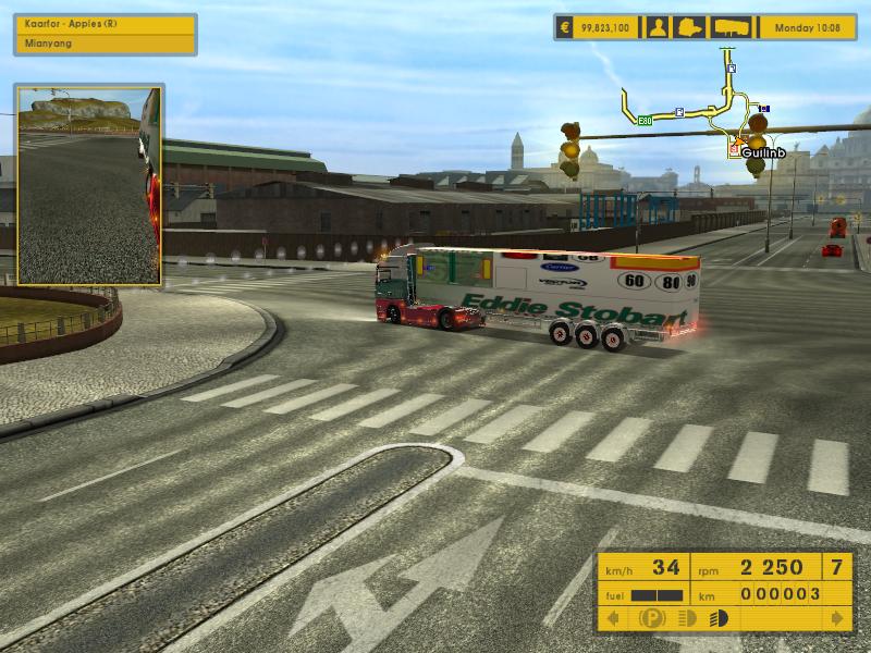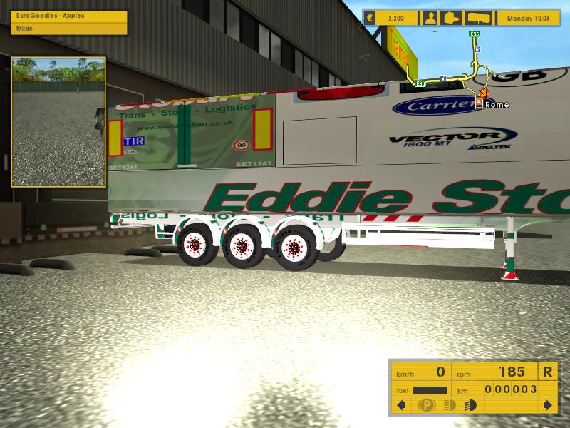 介绍:这是在ets1.3中测试的车头和皮肤。皮肤原来只能在stokes公司中才能拉到,我把皮肤复制到eurogoodies、trameri公司,货柜是reefer。货物: