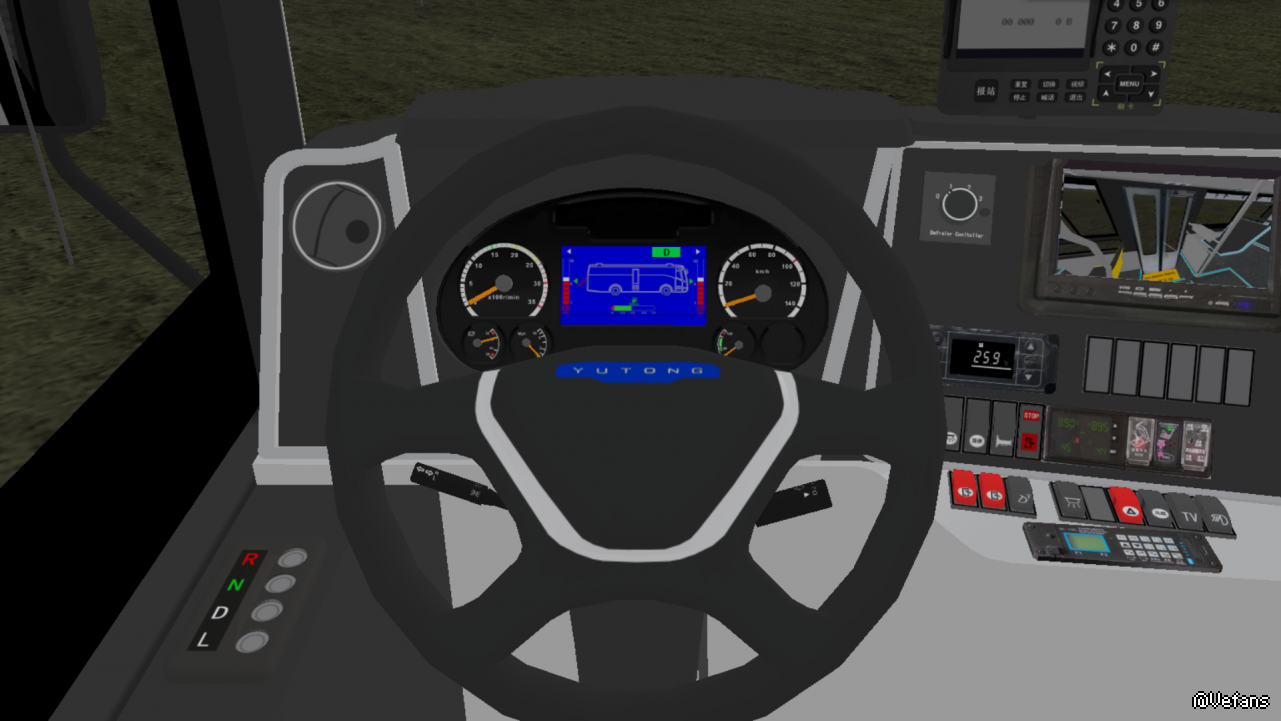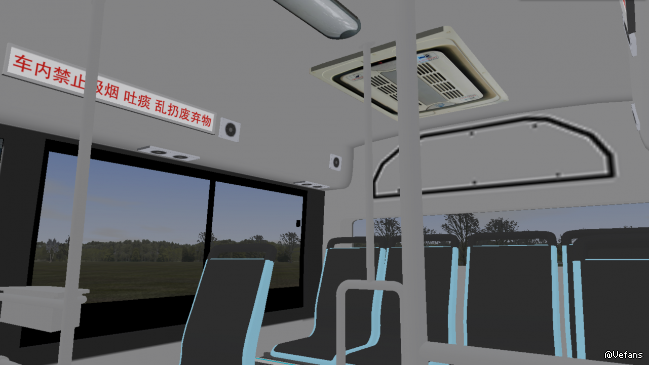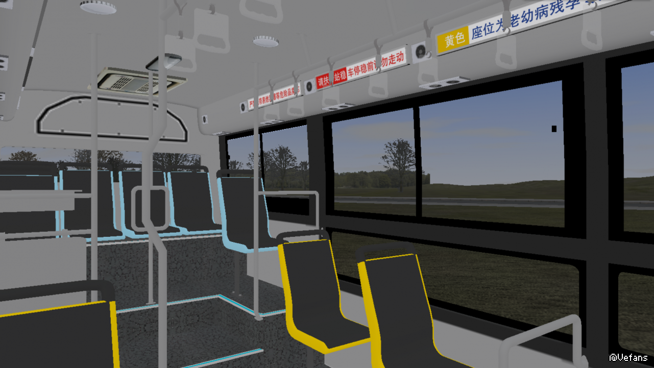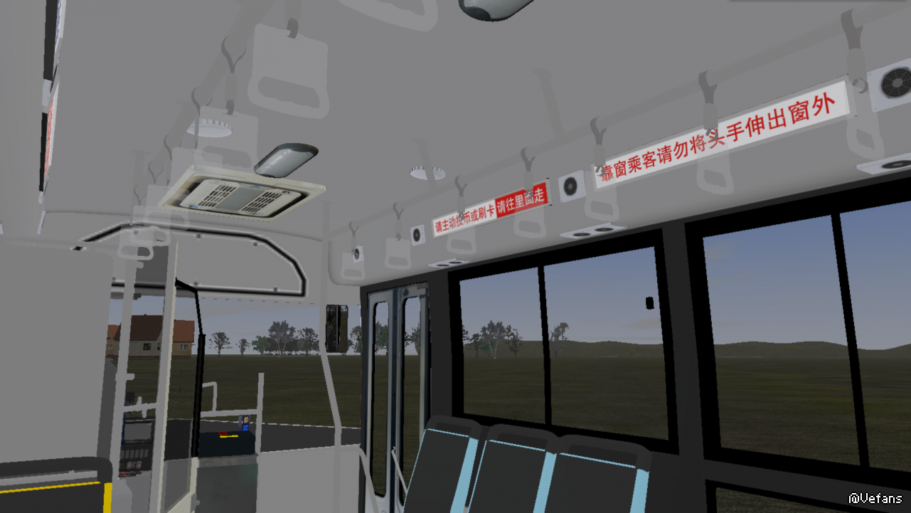 除此还有一些无关痛痒的DIY,比如车内广告位添加了乘车标语(毕竟在这些窄条里弄其他广告不是很现实),空调通风口也换了个更真实的;方向盘和后屁股还加了个YUTONG标。