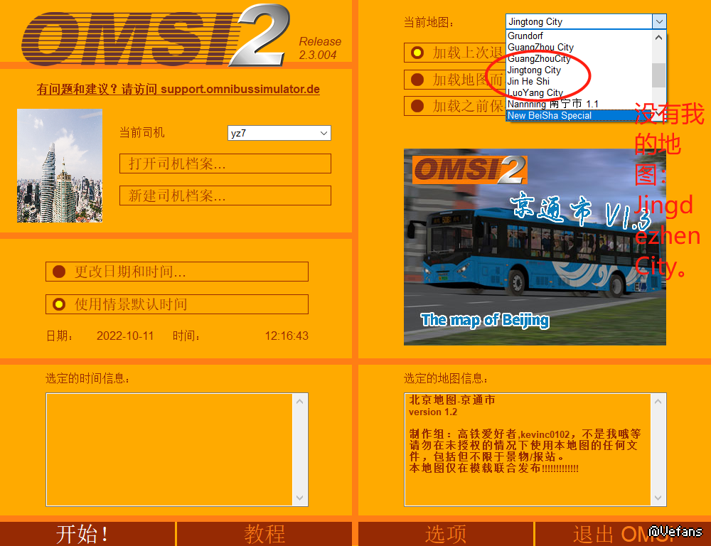 请把你的地图(jingdezhencity)放到x:/OMSI2/maps/    里面,如果进入游戏还不显示的话请选择“加载地图而不含玩家巴士”