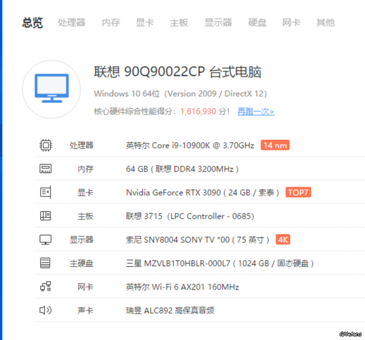 主显卡 Nvidia GeForce RTX 3090