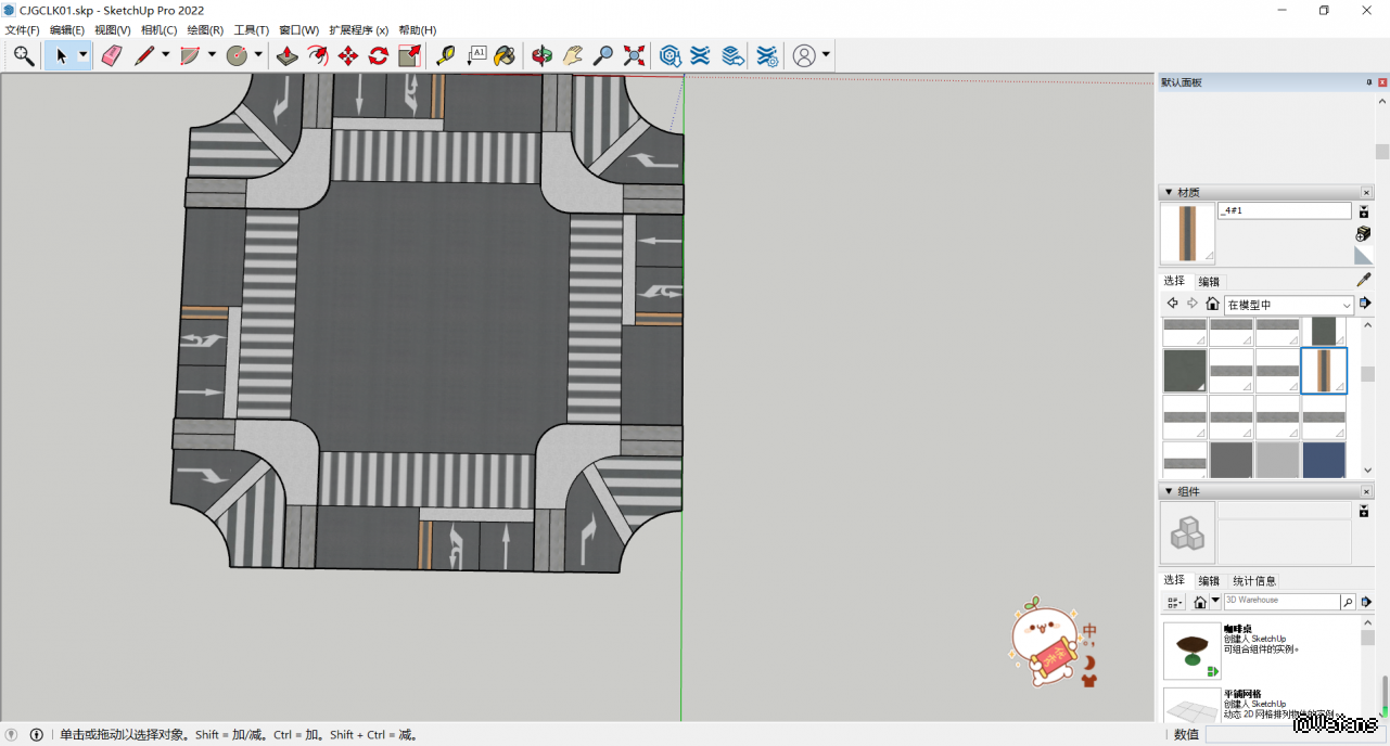 之前建模没建好,因为市第一次做地图,打算今天重做,而且我也不打算免费发布了SU路口建模图片: