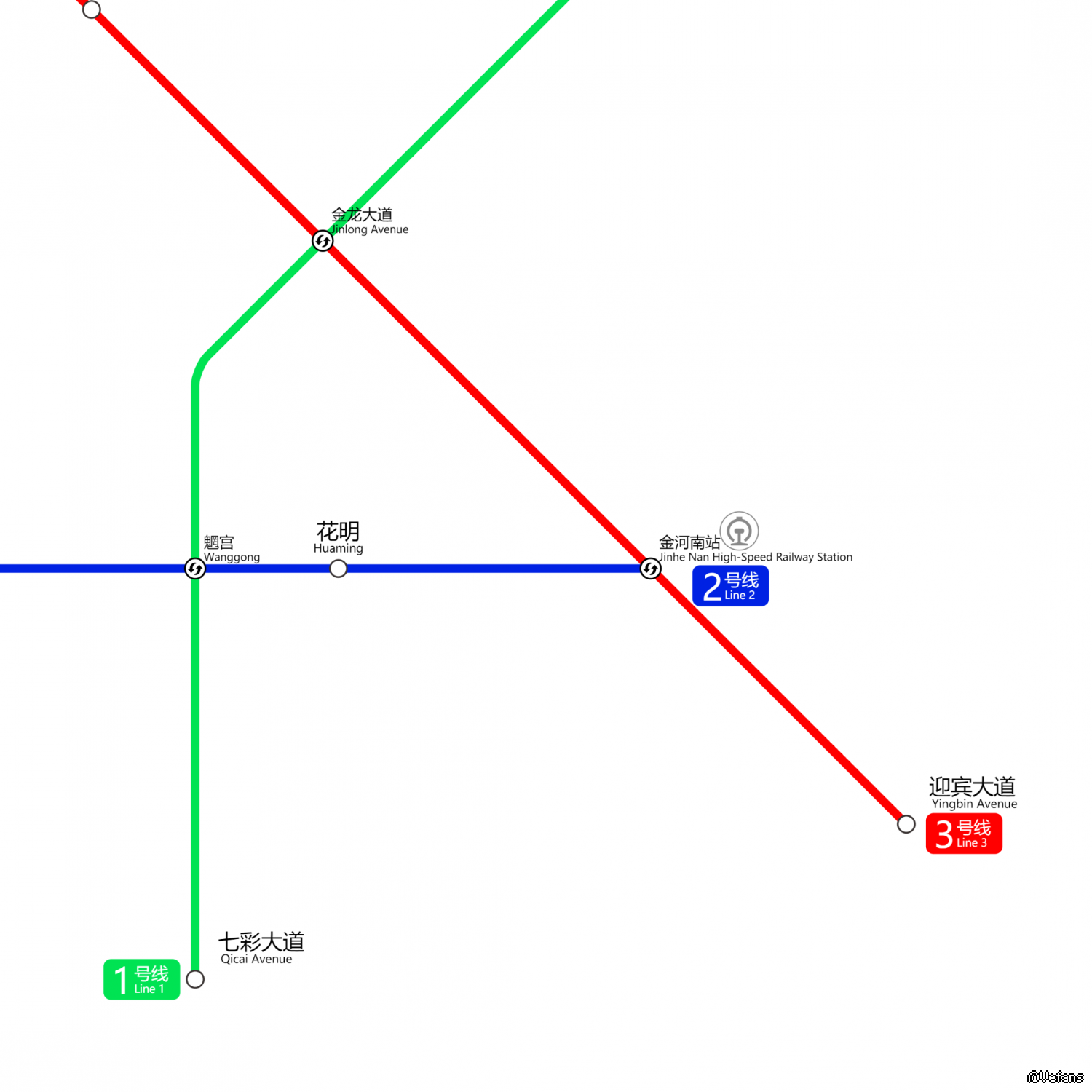 frankhe提供的金河2.9地图以及RMP工具的使用,绘制出金河3.0地铁路线图(纯属虚构,就是图一乐),但是其中的:“地铁钟楼”、“地铁摩尔百货”、“金河大道东”、“康河”、“七河路口”、“高朋路”、“魍宫”、“睢园路”、“四河”已尽力作者
